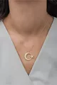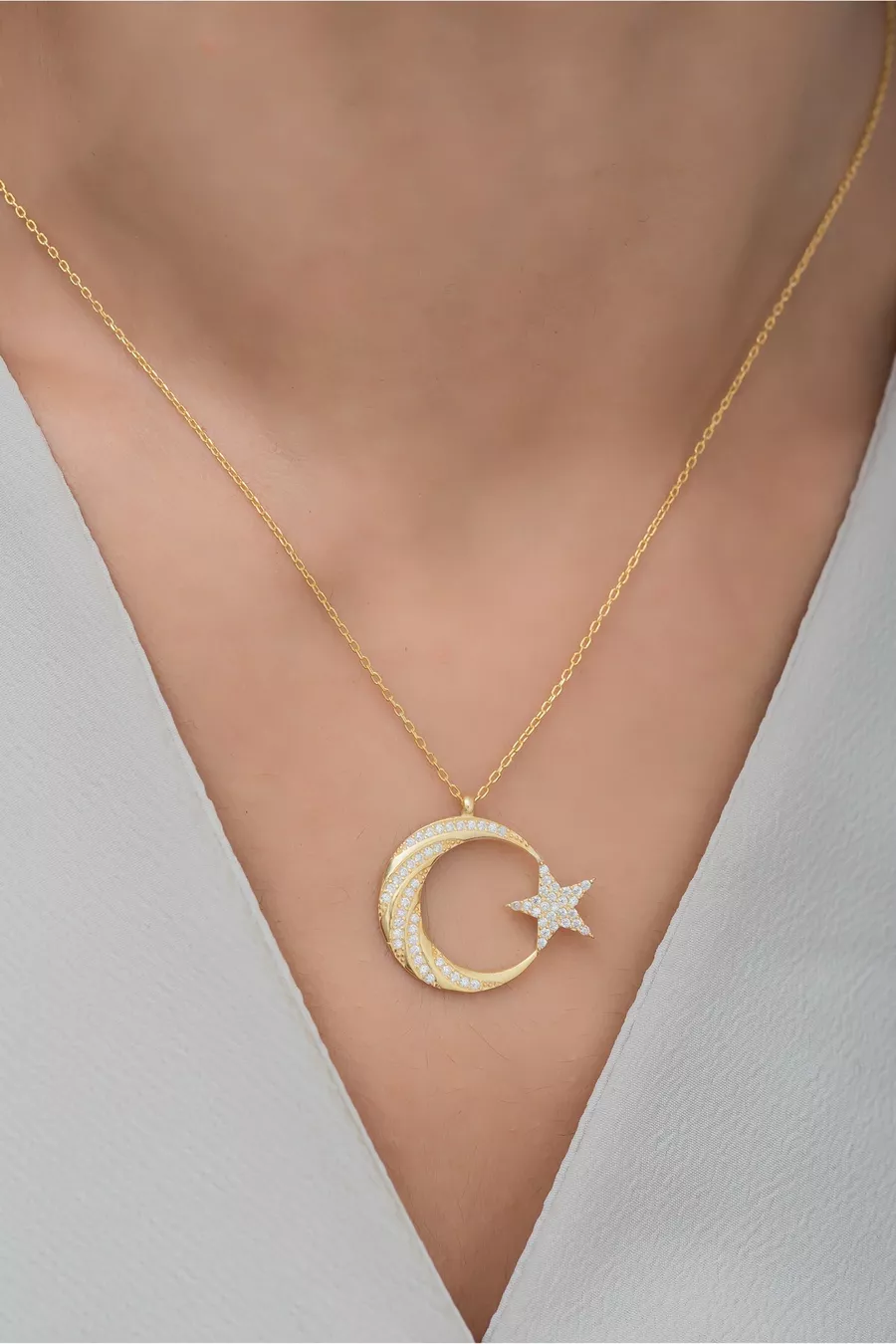 Sterling Silver Gold Zircon Stone Crescent-Star Necklace