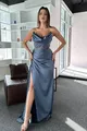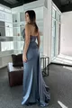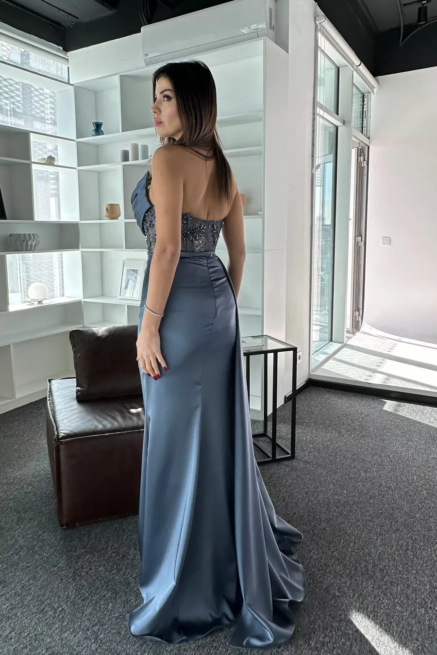 Strapless and Transparent Detail Aller Stylish Satin Design Evening Dress