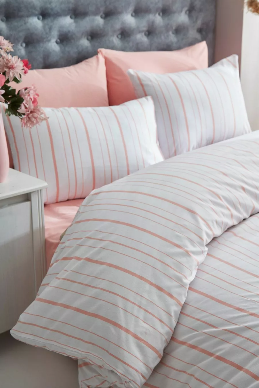 Material: Cotton Size/Dimension: 100 x 200 Sheet Type: Without sheet Color: Pink Feature: Breathable Pattern: Striped Washing Instructions: Type 0 Package Content: 1000 g Box Condition: No box