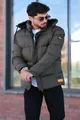 Fit: Regular Collar Type: Hooded Material: Polyester Fabric Type: Woven Color: Khaki Closure Type: Zipped Pattern: Solid Product Detail: Zipper Product Type: Solid Pocket: Double pocket Sleeve Length: Long Sleeve Type: Standard Sleeve Thickness: Thick Lining: Unlined Length: Standard Occasion: Casual Silhouette: Puffer Technique: Felt and Fur Collection: Basic Additional Feature: No additional feature Filling Technique: Filled Sustainability Detail: No Belt/Strap: Without belt Filling Material: Polyester Persona: Cool & Comfort Print/Embroidery Technique: Unprinted Material Composition: 100% Polyester Weaving Type: Faux Leather Washing Instructions: Dry cleaning is recommended. Do not machine wash. Please check the product label for detailed washing instructions. Season: Winter Origin: TR Box Condition: No box