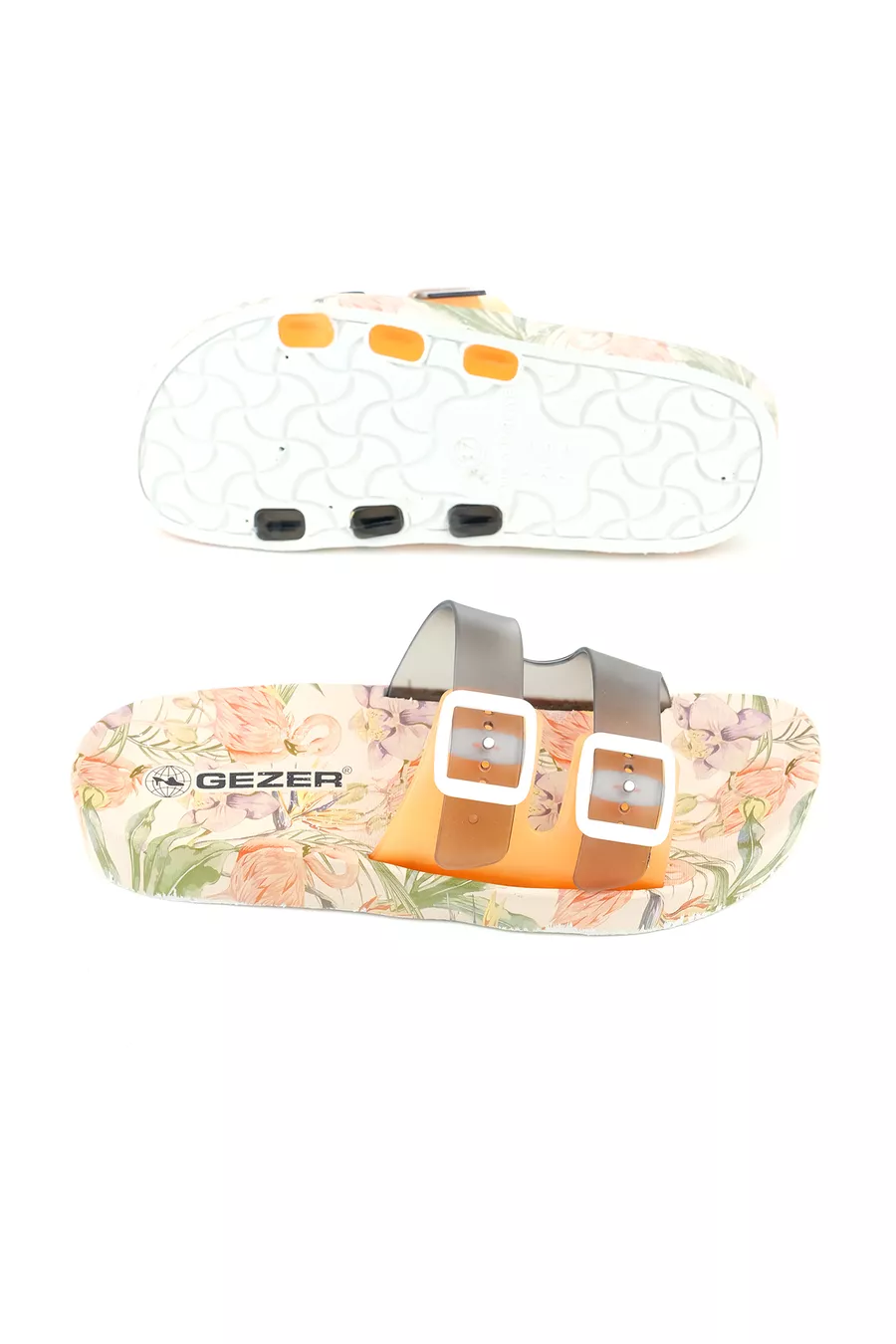 Material: EVA Upper Material: Synthetic Leather Lining Material: Synthetic Leather Box Condition: No box Heel Type: Flat Heel Heel Height: Low Heel (1-4 cm) Color: Orange Sole Material: Poly Insole Material: Synthetic Leather Sustainability Detail: No Occasion: Casual/Daily Washing Instructions: Type 4 Pattern: Solid Fabric Type: Woven Origin: TR Season: Summer Outer Material: Synthetic Leather