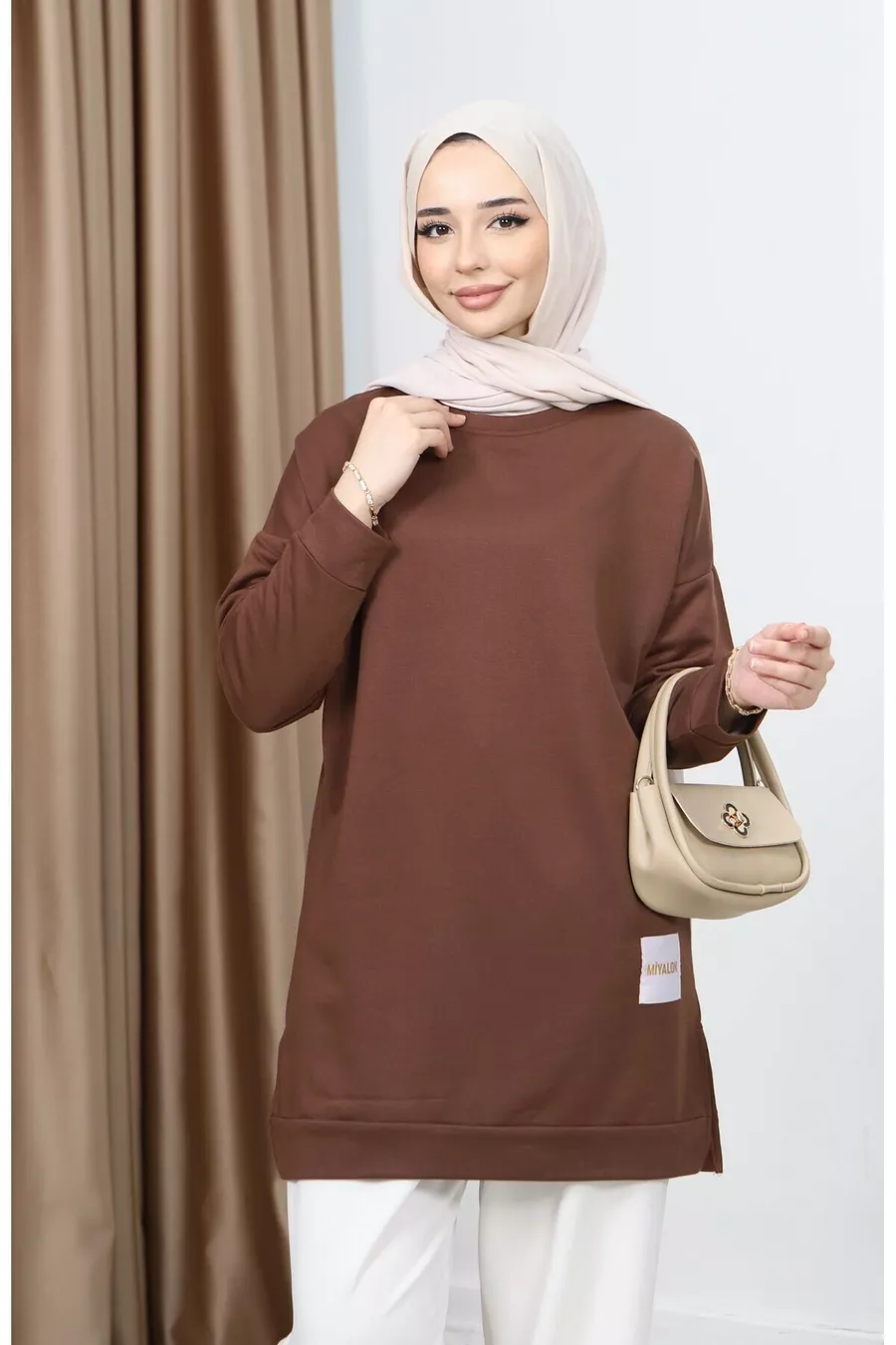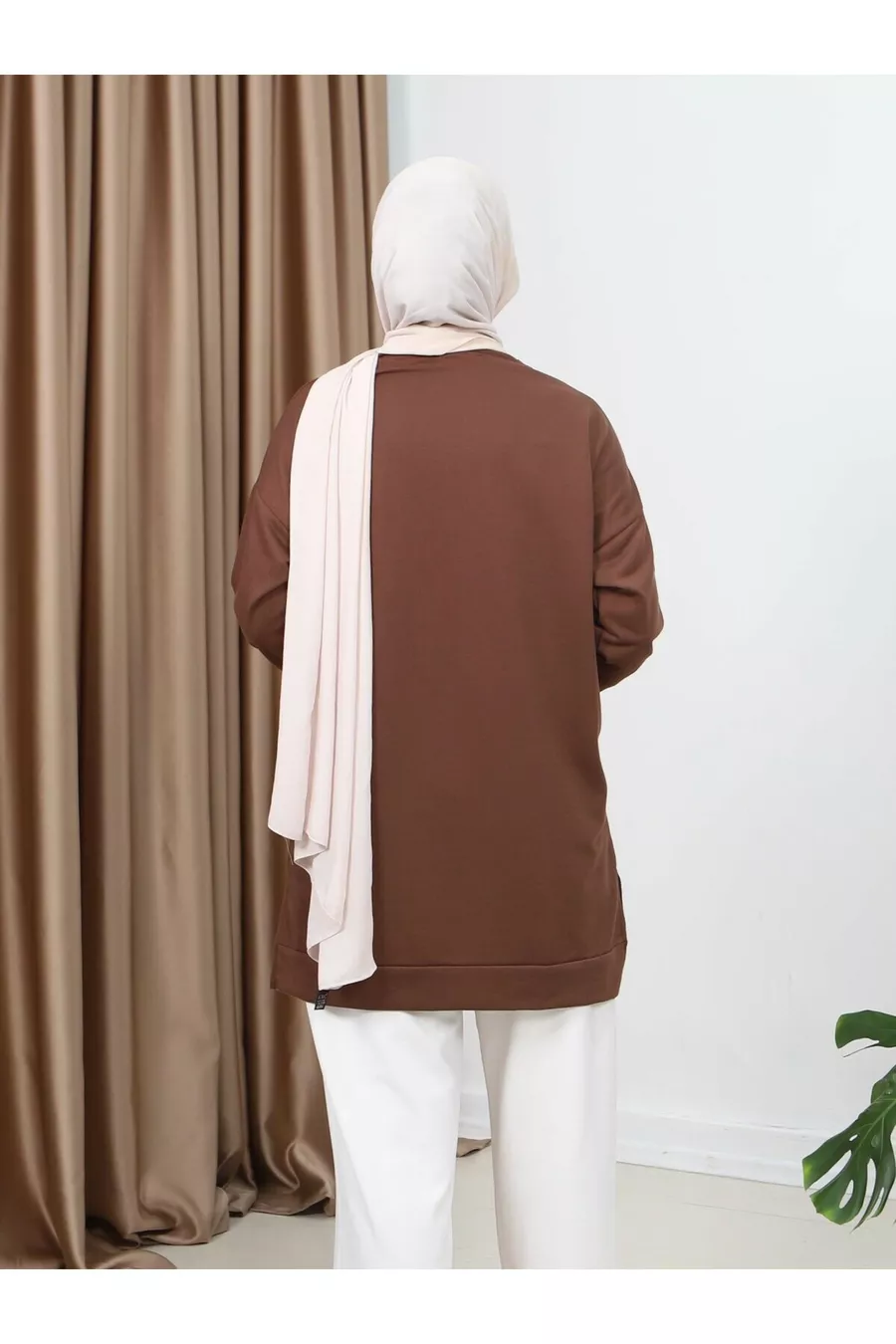 Material: Polyester Fabric Type: Woven Sleeve Type: Long Sleeve Pattern: Plain Fit: Oversize Neck Type: Crew Neck Color: Brown Product Type: Plain Collection: Modest Clothing Product Detail: With Slit Pocket: No Pockets Sleeve Length: Long Material Composition: 80% Polyester, 20% Cotton Occasion: Business Weave Type: 2-Ply Length: Long Additional Feature: Wrinkle Resistant Persona: Feminine Washing Instructions: Type 1 Silhouette: Oversize Sustainability Detail: Organic Origin: TR Box Condition: No Box
