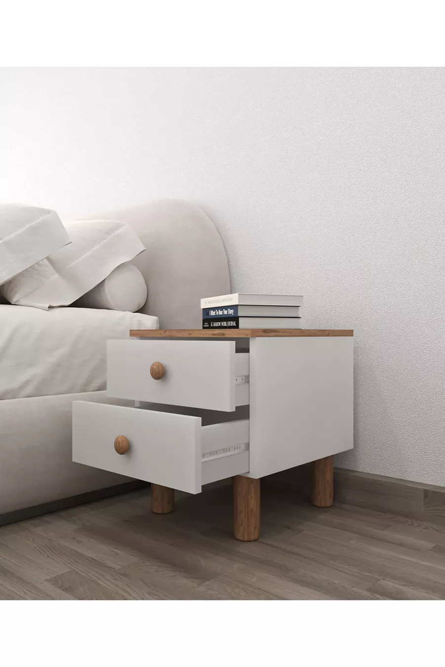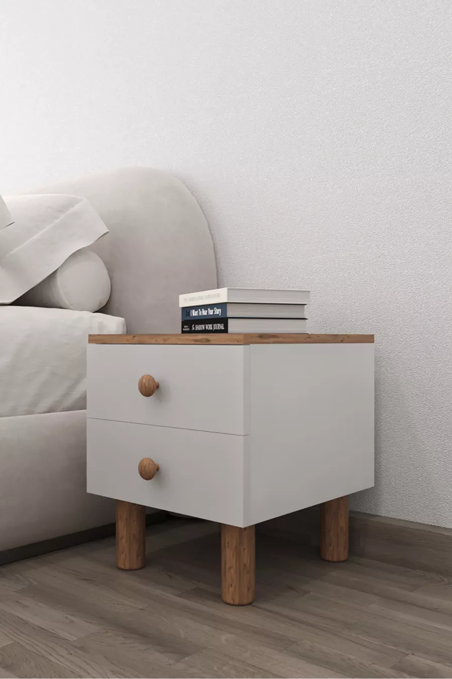 Sun 2-Drawer Nightstand - Atlantic Pine - White