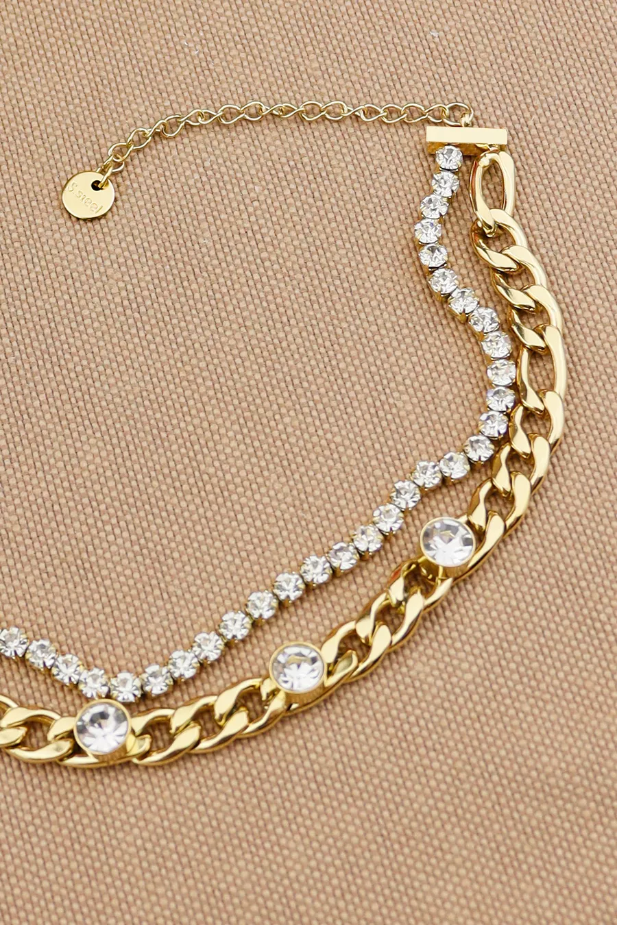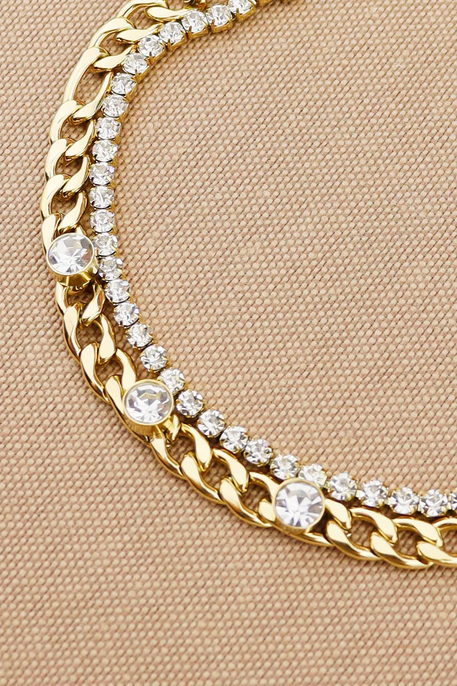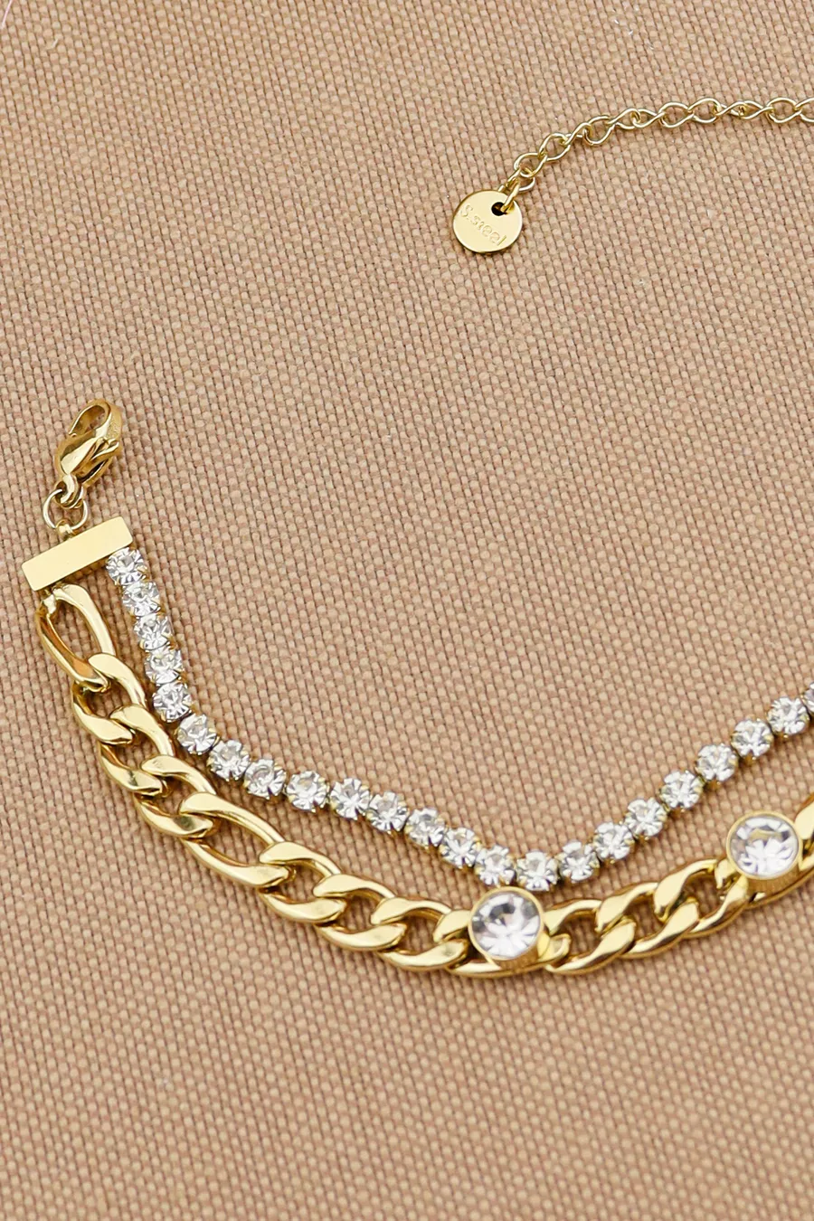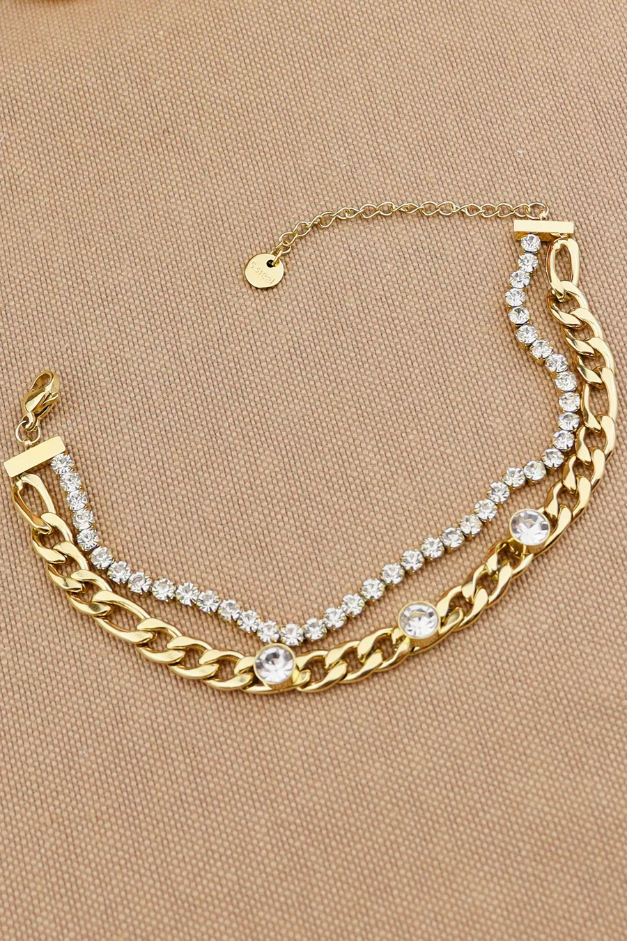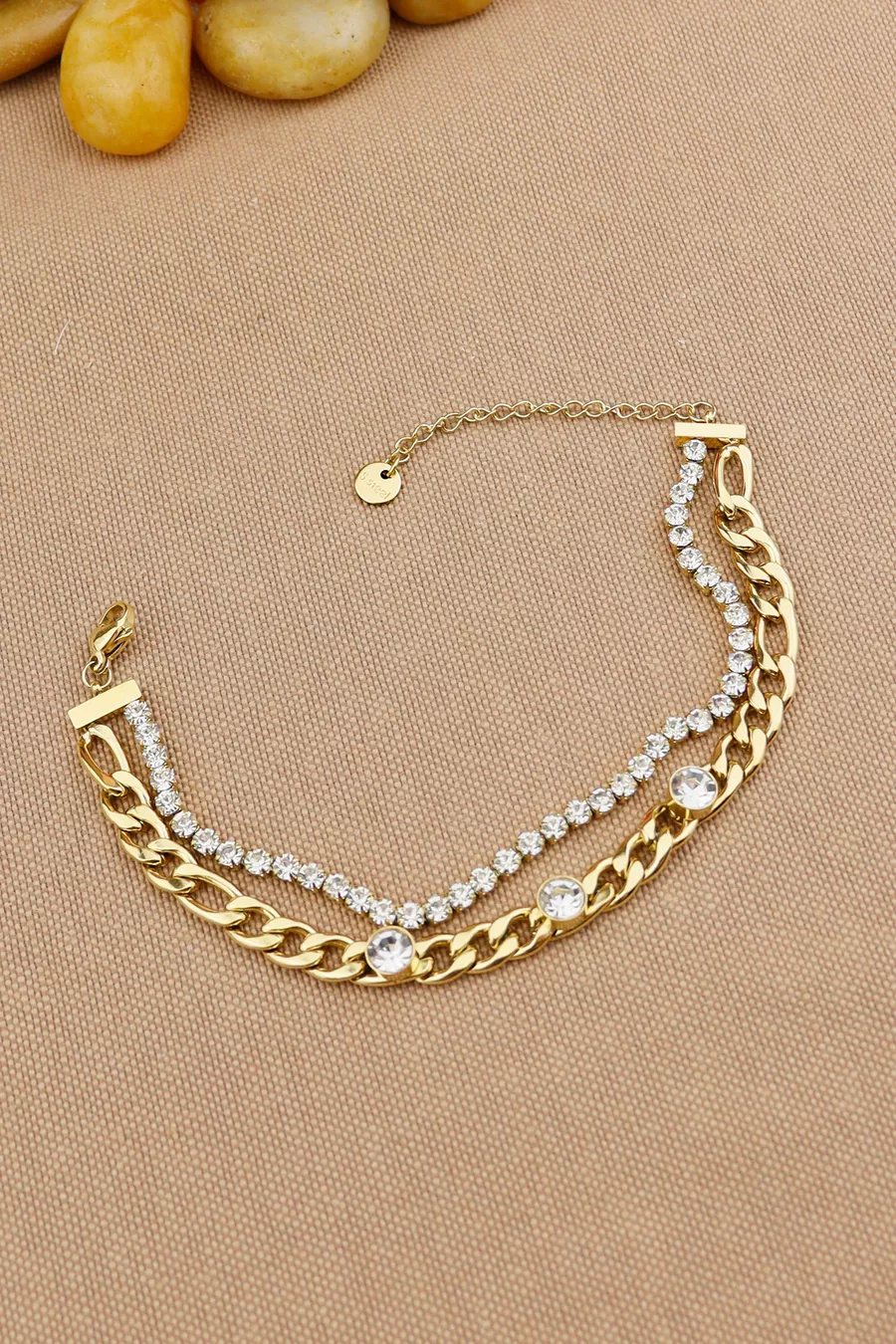 Suyolu Zirkon Taşlı Zincir 2li Kombin Zincir L Çelik Kararmaz Çelik Bileklik +5cm
