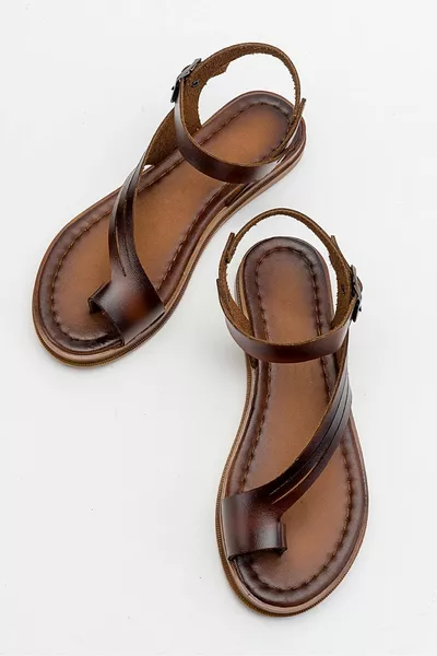 Upper Material: Faux Leather Heel Type: Flat Heel Season: Summer Sole Material: Thermoplastic Heel Height: Low Heel (1-4 cm) Insole Material: Faux Leather Craftsmanship: Handcrafted Color: Brown Lining Material: Genuine Leather Closure Type: Strapped Persona: Cool & Comfort Additional Feature: Licensed Sustainability Details: Yes Material Composition: 100% Leather Occasion: Casual/Daily Washing Instructions: Type 4 Pattern: Solid Fabric Type: Faux Leather Origin: TR Box Condition: Boxed Outer Material: Faux Leather