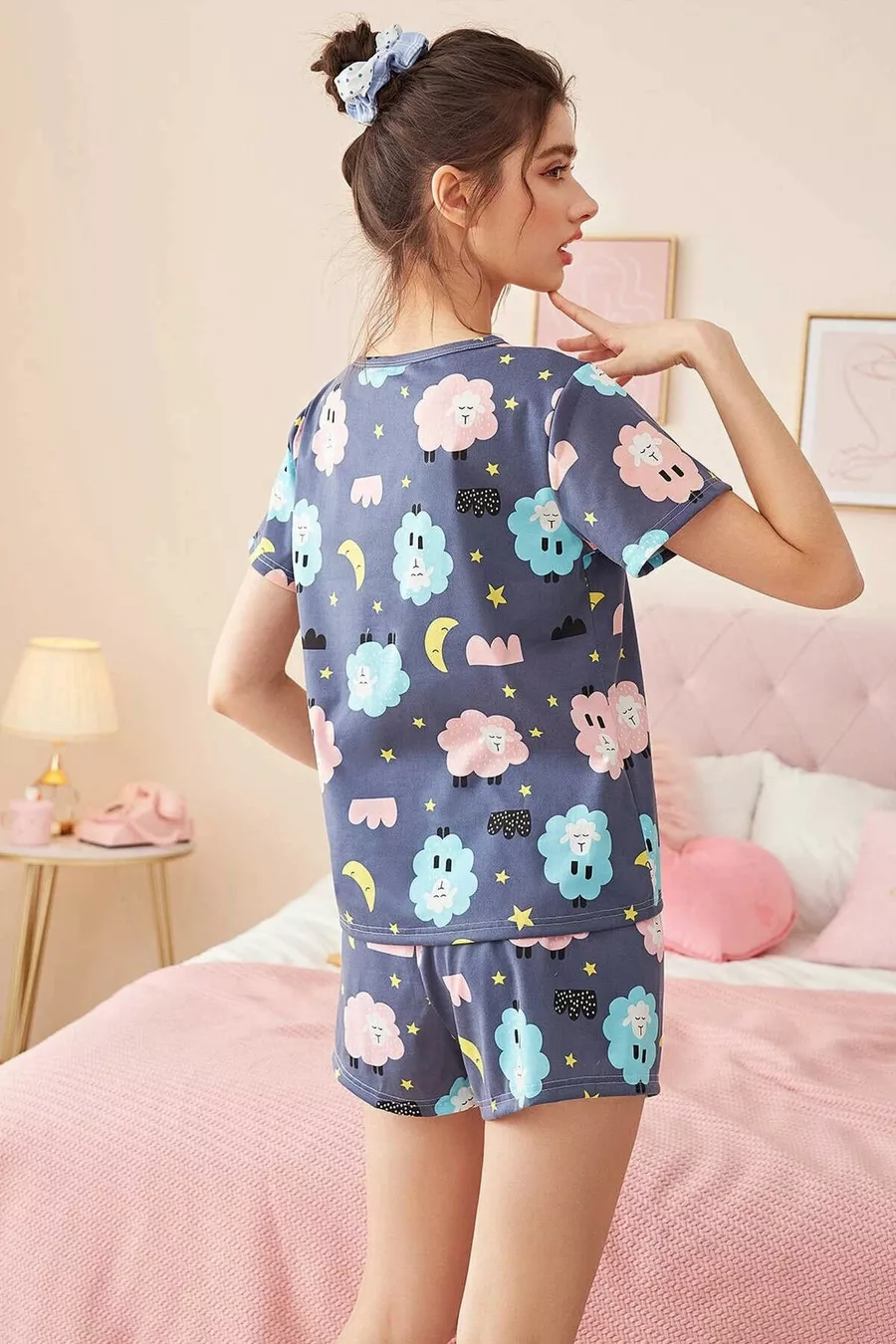 Sustainability Detail: No Sleeve Type: Standard Sleeve Pattern: Printed Neck Type: Crew Neck Length: Short Material: Textile Color: Multicolor Product Type: Printed Product Detail: Hem Collection: Homewear Set: T-shirt-Shorts Sleeve Length: Sleeveless Technique: Piece Fit: Relaxed Fabric Type: Woven Waist: Regular Waist Weave Type: Suprem Number of Pieces: 2 Pieces Silhouette: Basic Persona: Cool & Comfort Environment: Homewear Additional Feature: Washable Washing Instructions: Type 1 Hem Type: Wide Leg Package Content: Single Height: Short Season: Summer Origin: TR