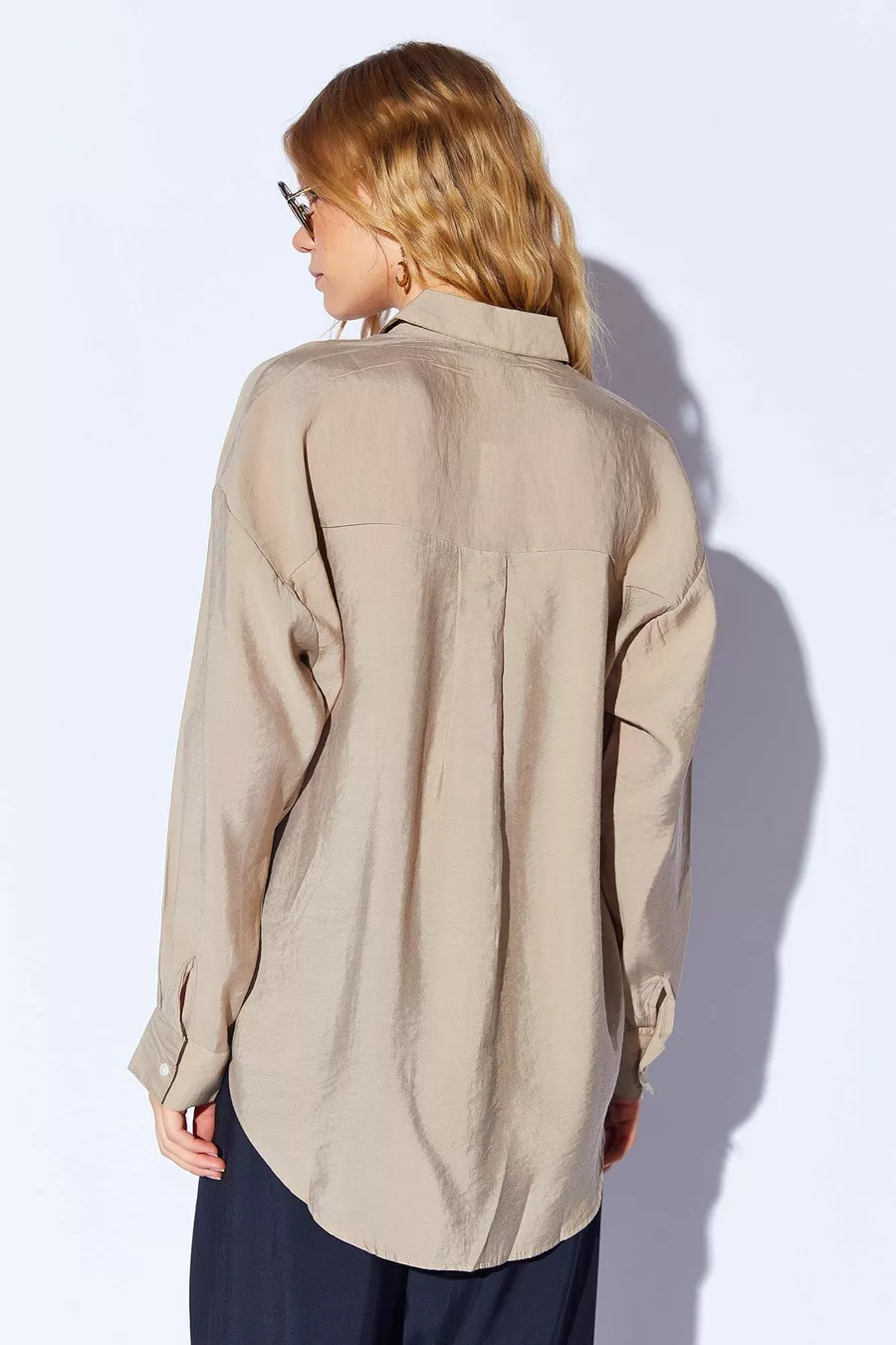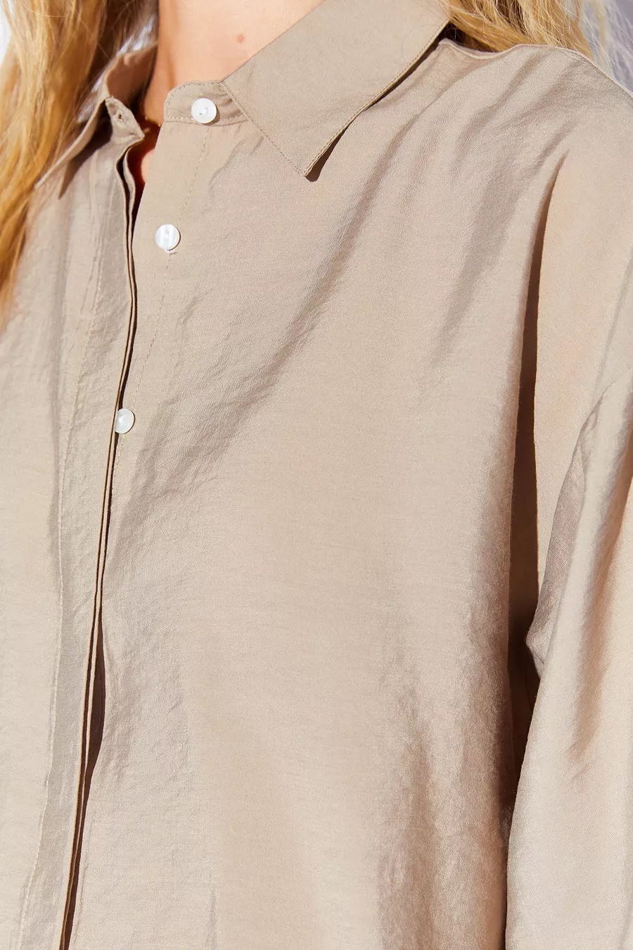 Toprak Modal Soft Textured Soft Hidden Snap Detailed Oversized Women's Shirt |