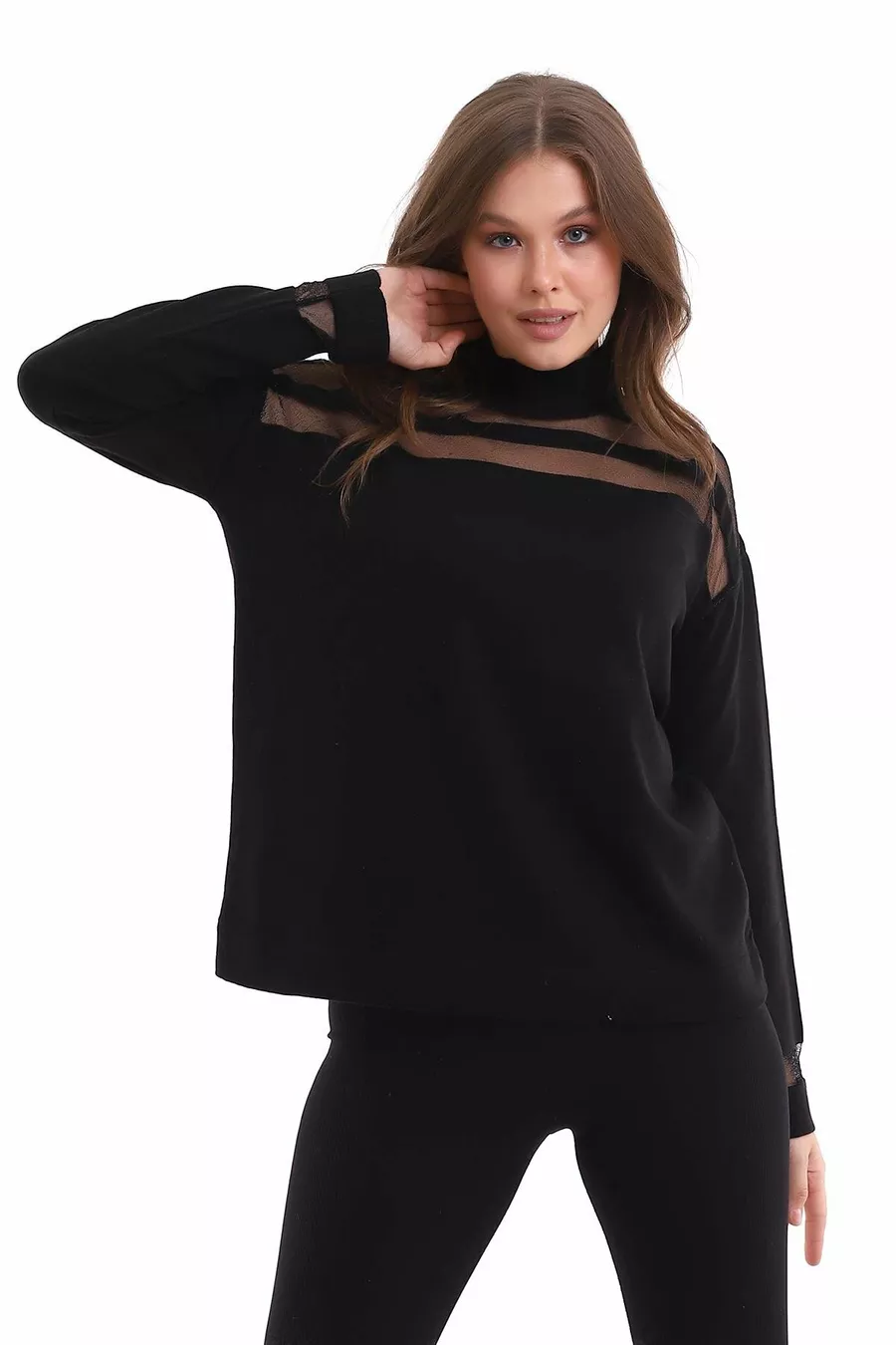 Pattern: Striped Fit: Oversize Neck Type: Half Turtleneck Fabric Type: Knit Color: Black Material: Acrylic Sleeve Type: Long Sleeve Pocket: No Pocket Product Type: Plain Sleeve Length: Long Thickness: Medium Collection: Basic Silhouette: Regular Style: Trend Length: Regular Additional Feature: No Additional Feature Print/Embroidery Technique: No Print Persona: Cool & Comfort Weave Type: Single Plate Sustainability Detail: No Number of Pieces: 1 Belt/Strap Status: Without Belt Material Composition: 100% Acrylic Washing Instructions: 100% Acrylic Origin: TR Box Condition: No Box