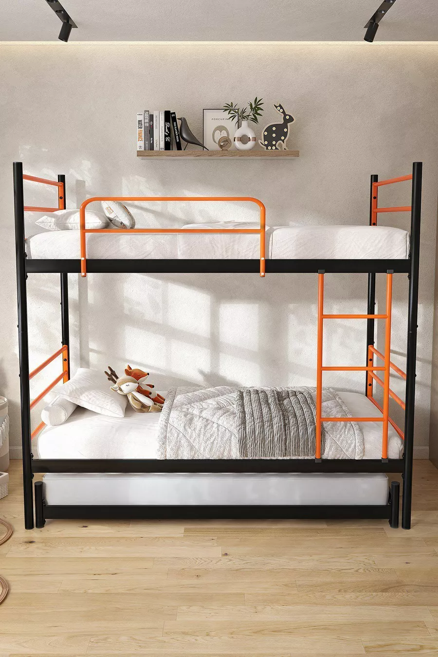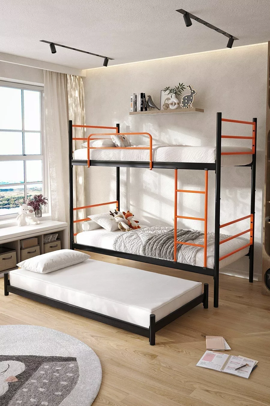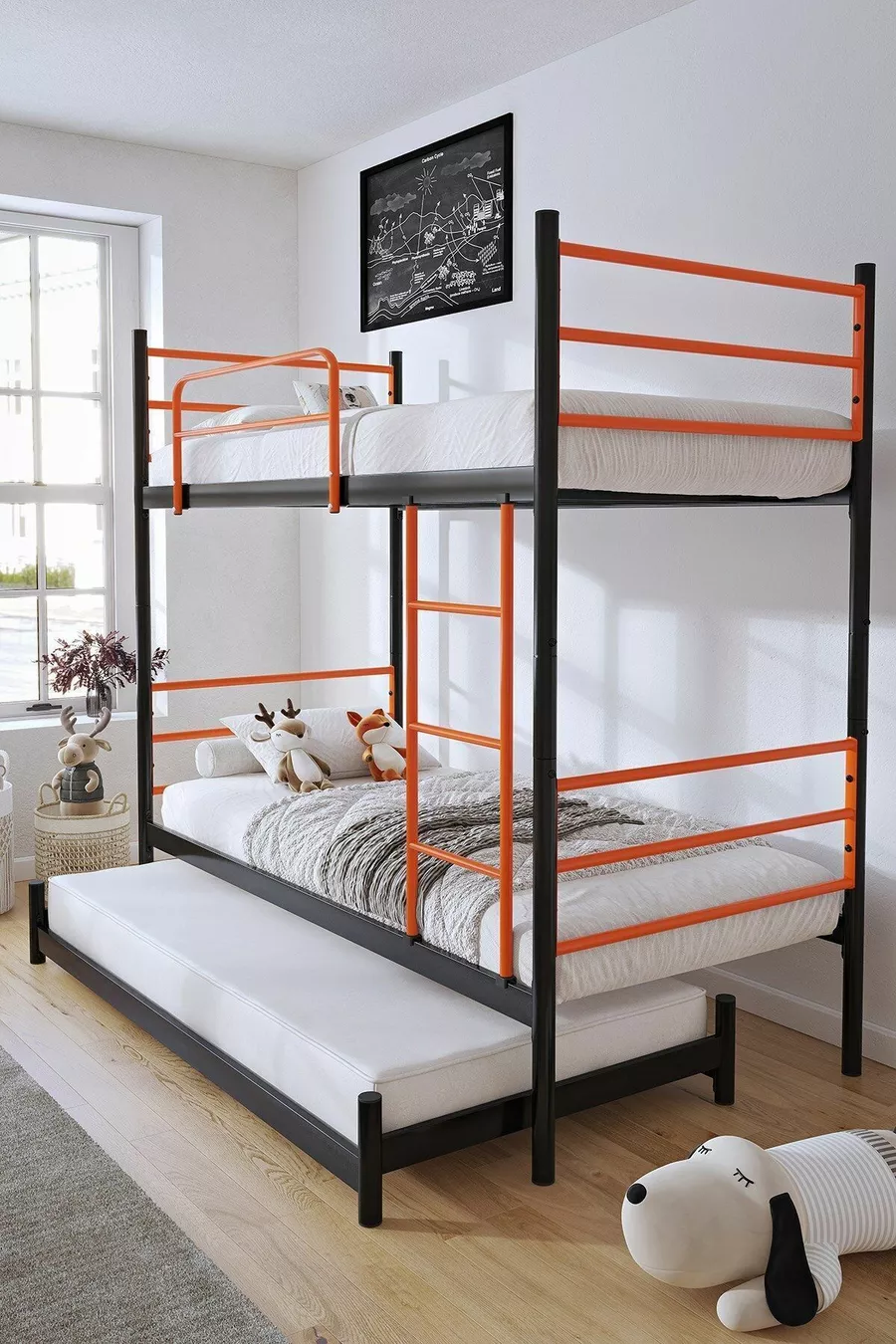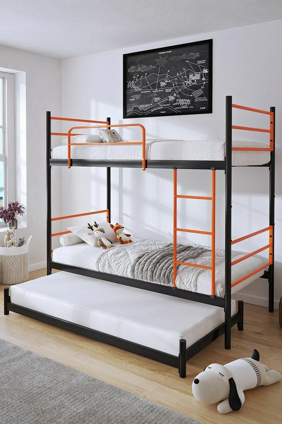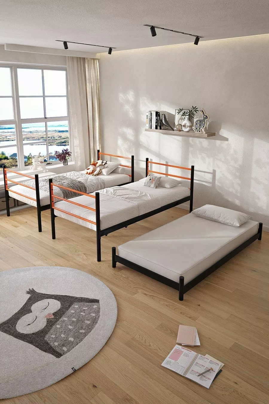 Color: Orange Material: Metal Size: Double Dimensions: 90 x 200 Warranty: 2 Years Style: Scandinavian Theme / Style: Scandinavian Canopy Bed: Yes Feature: Long