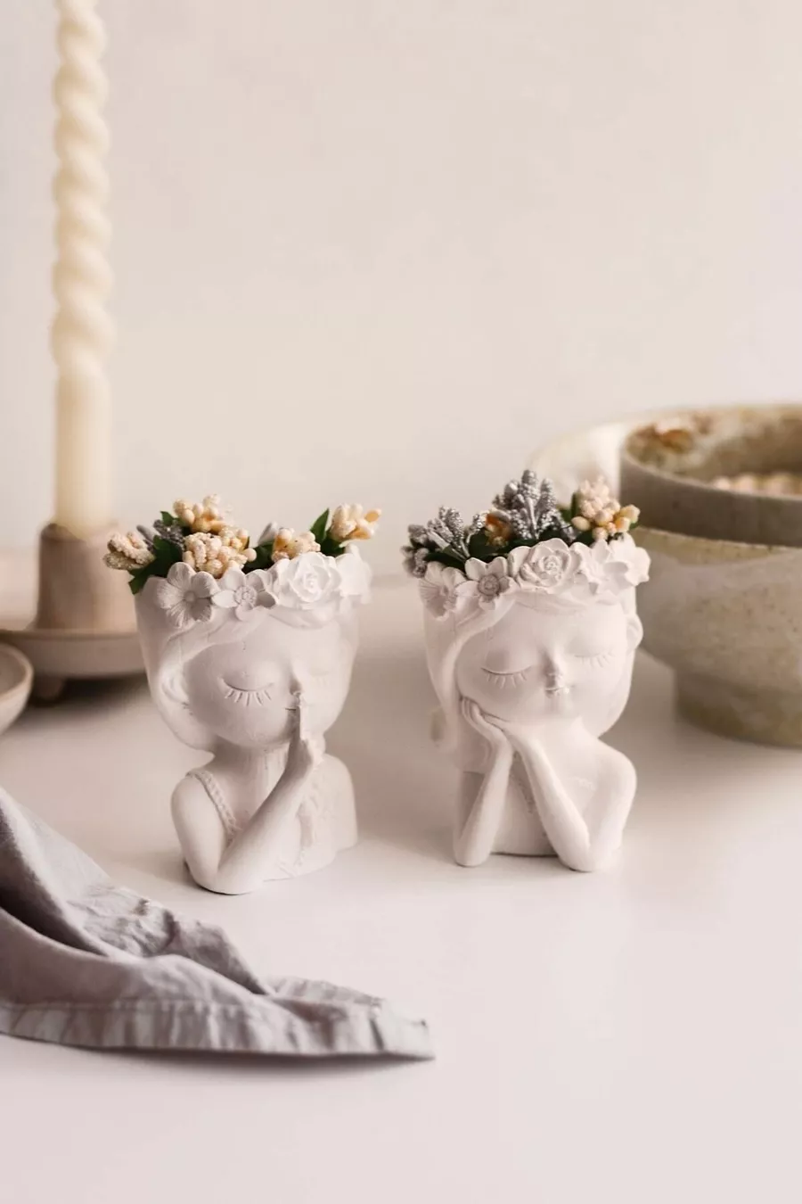 Material: Plaster Color: White Size/Dimension: 7 x 10 Number of Pieces: 2 Theme / Style: Bohemian Origin: TR