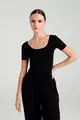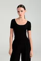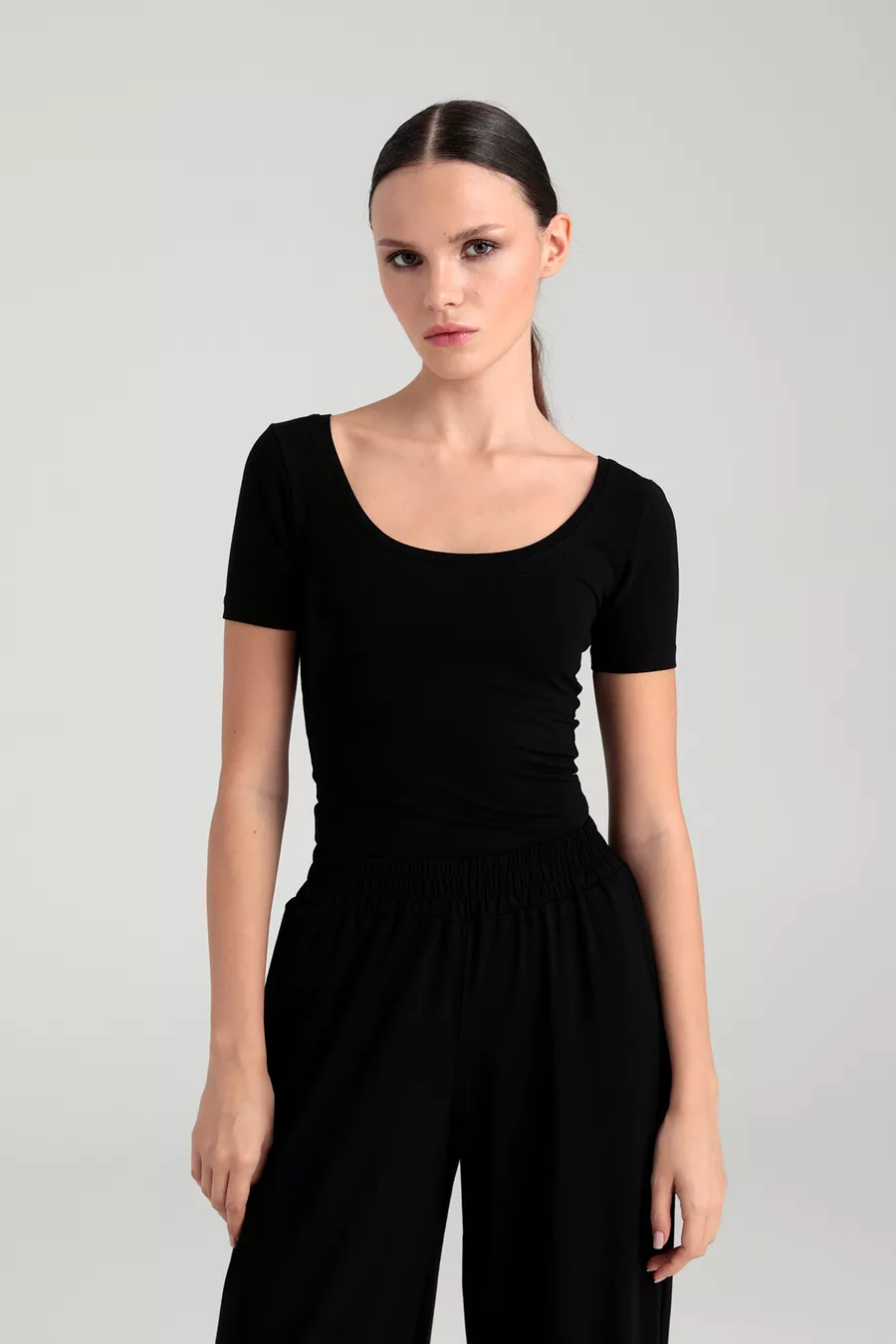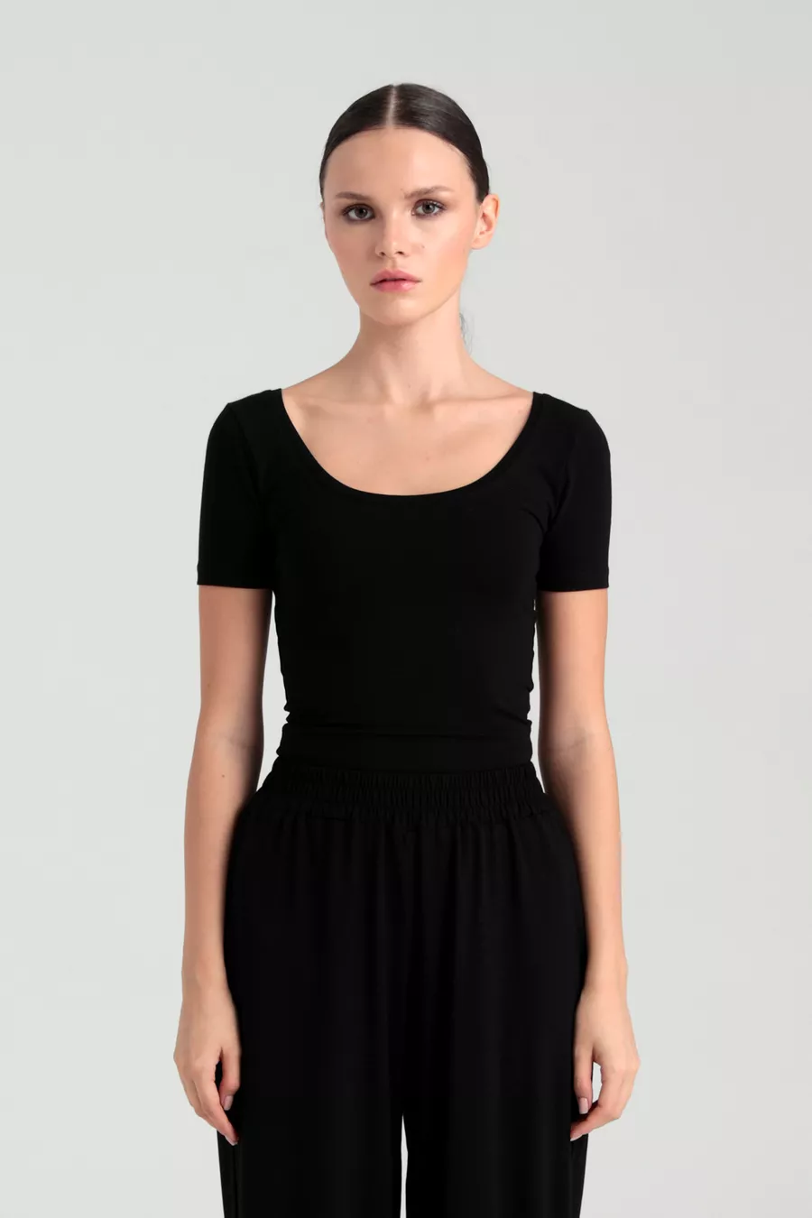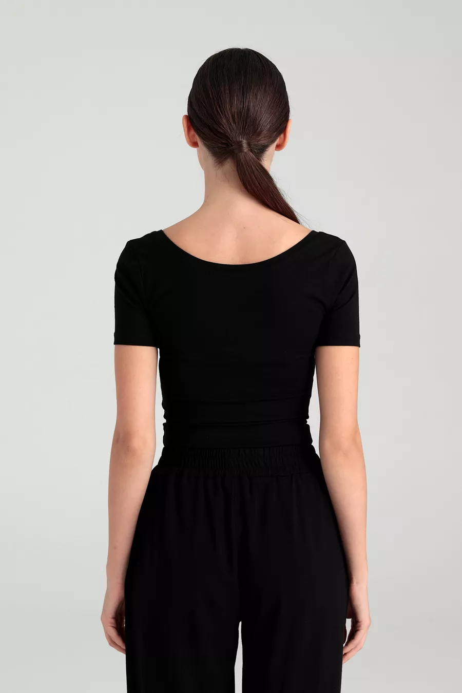 Ultra Soft Oval Neck Short Sleeve Blouse Black