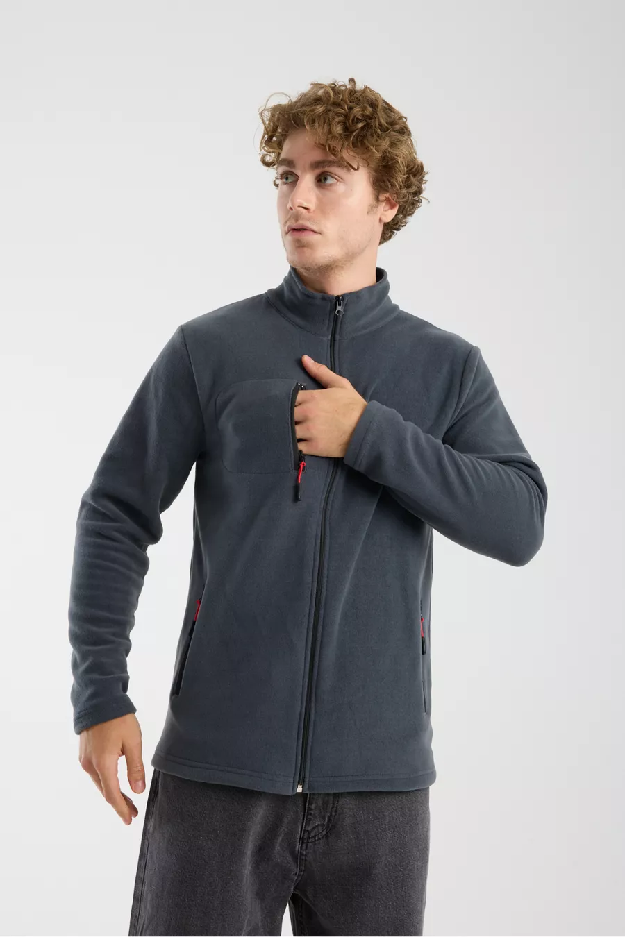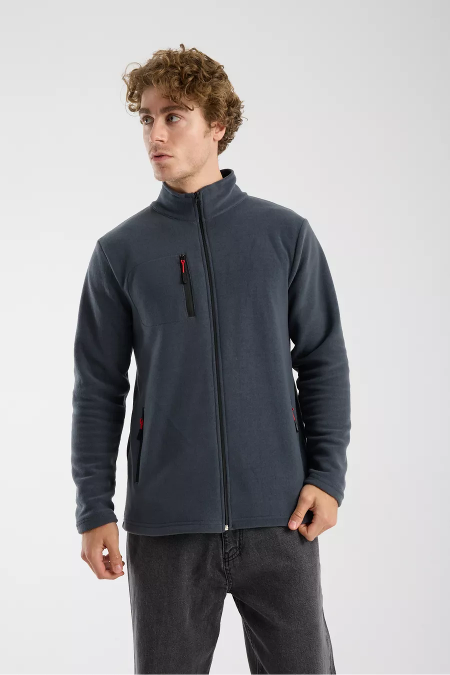 Pattern: Plain Silhouette: Regular Occasion: Sportswear Fit: Regular Fabric Type: Woven Color: Gray Closure Type: Zipper Material: Fleece Collar Type: Stand Collar Sleeve Type: Long Sleeve Length: Long Sleeve Length: Long Material Composition: Fleece Washing Instructions: Hand Wash Recommended Collection: Unisex Sustainability Detail: Yes Country of Origin: TR
