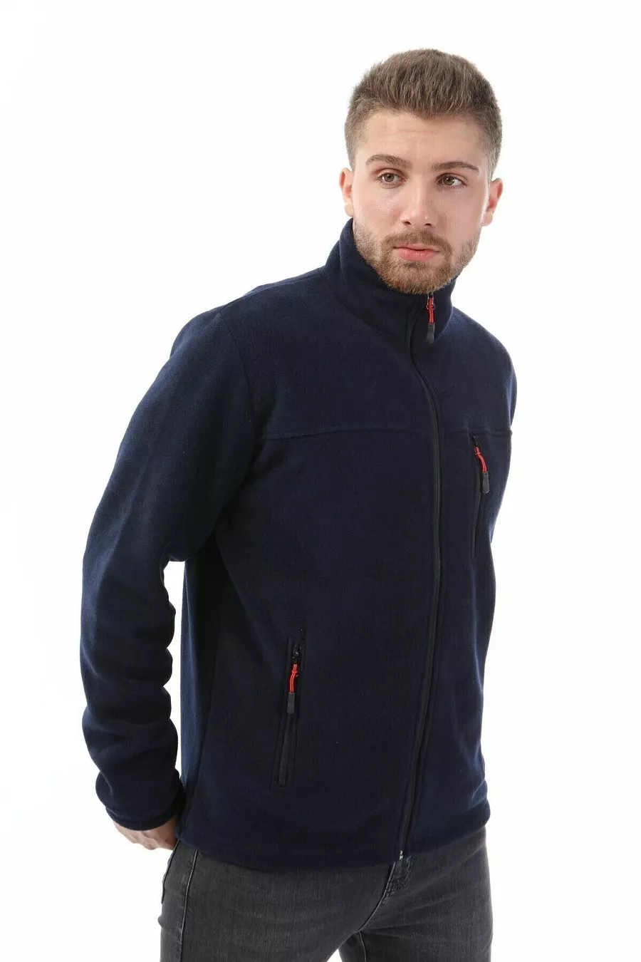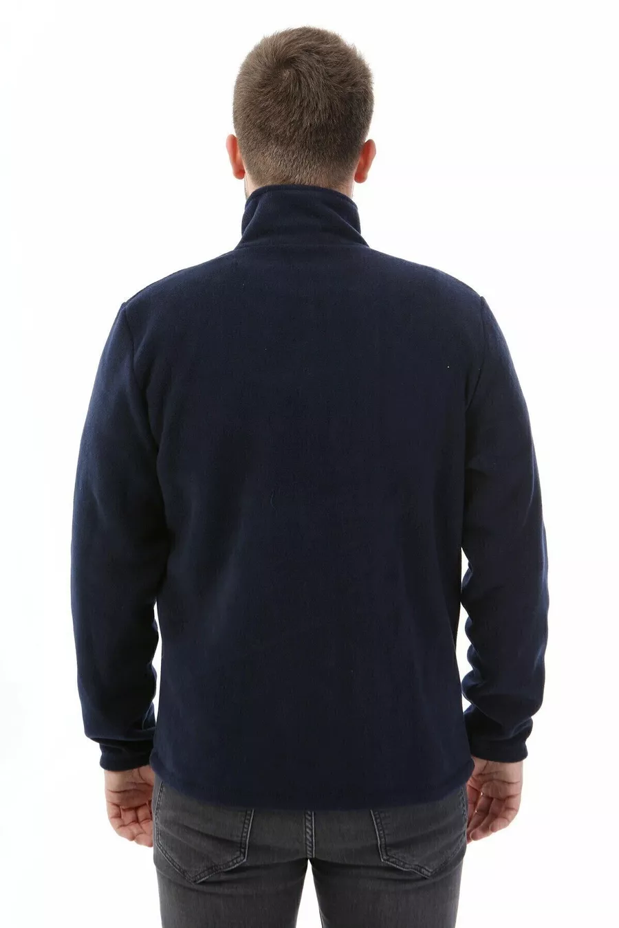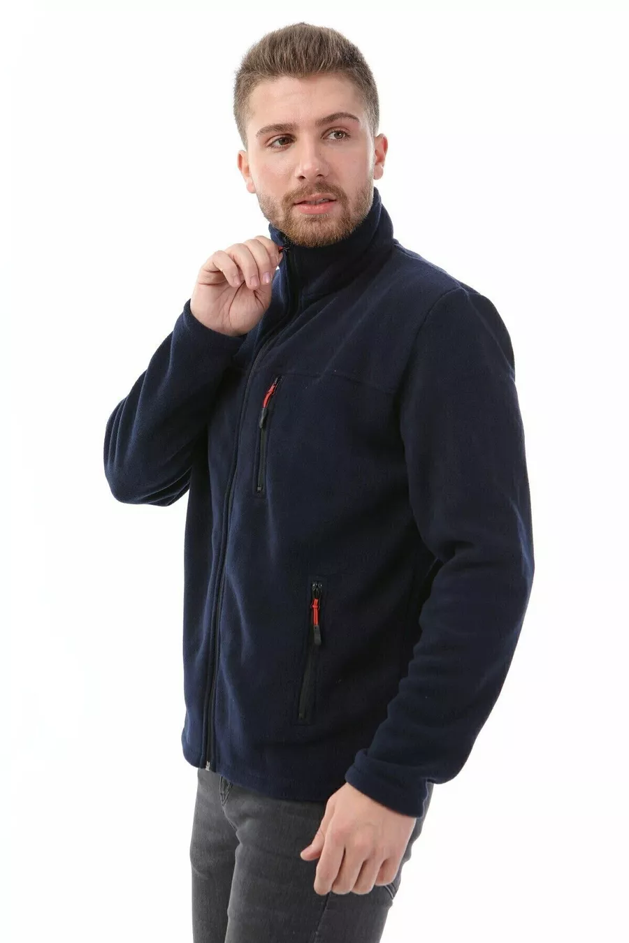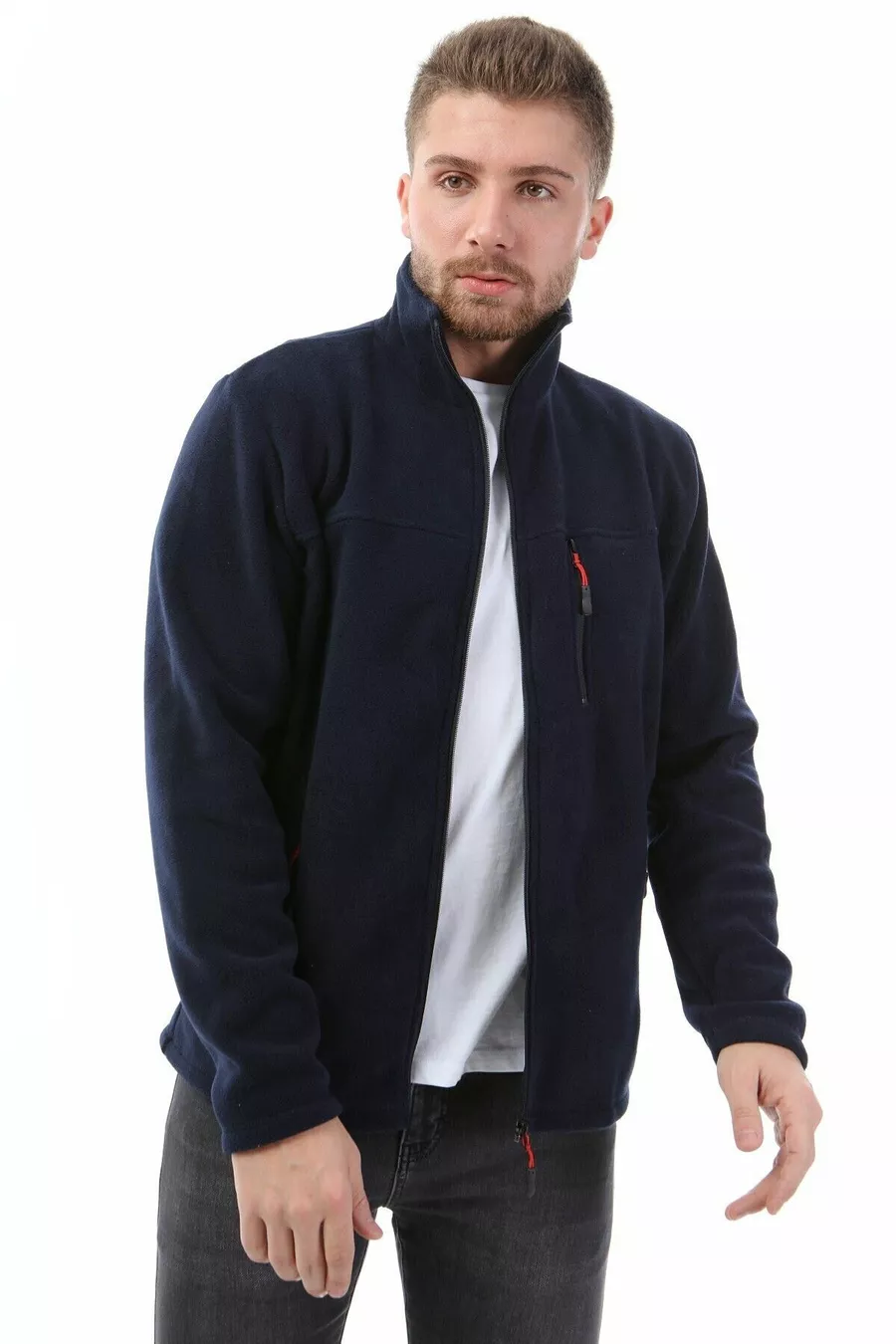 Unisex Navy Blue Bato Collar Full Zipper 3 Pocket Outdoor Fleece Jacket