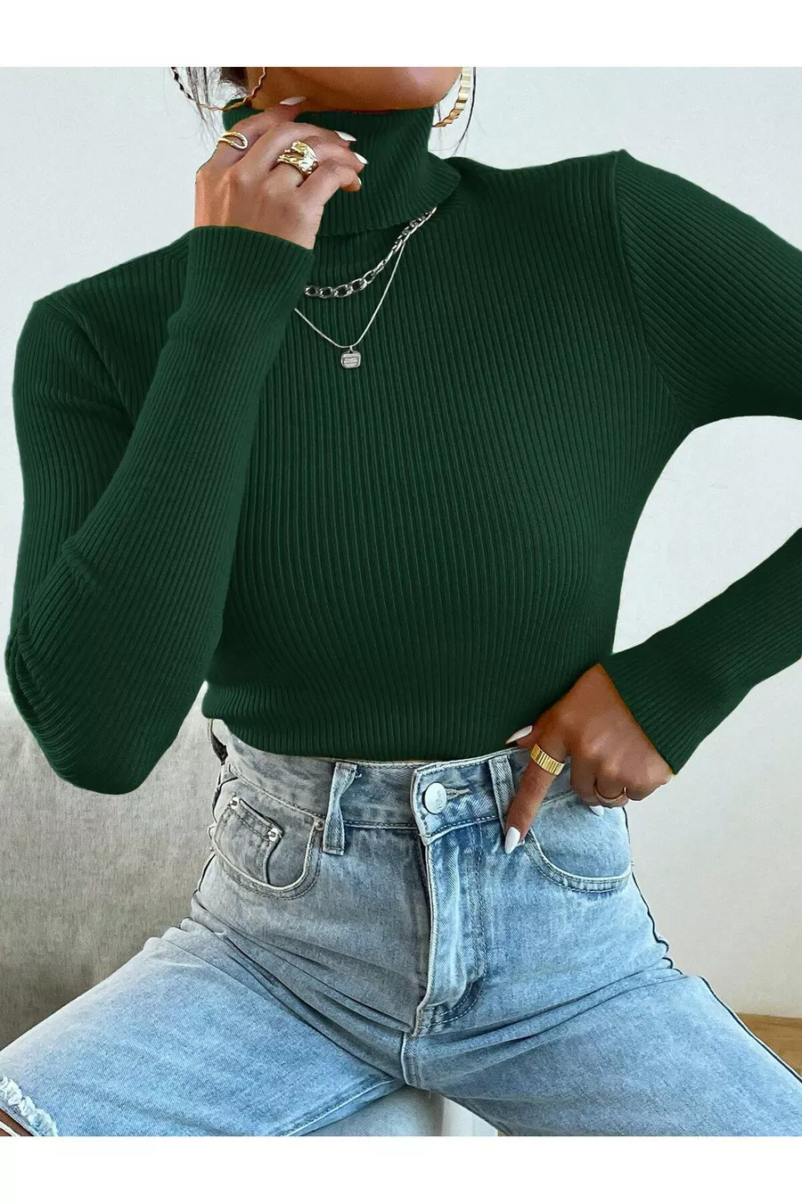 Unisex Olive Green Cotton Turtleneck Slimfit Fleece Sweater