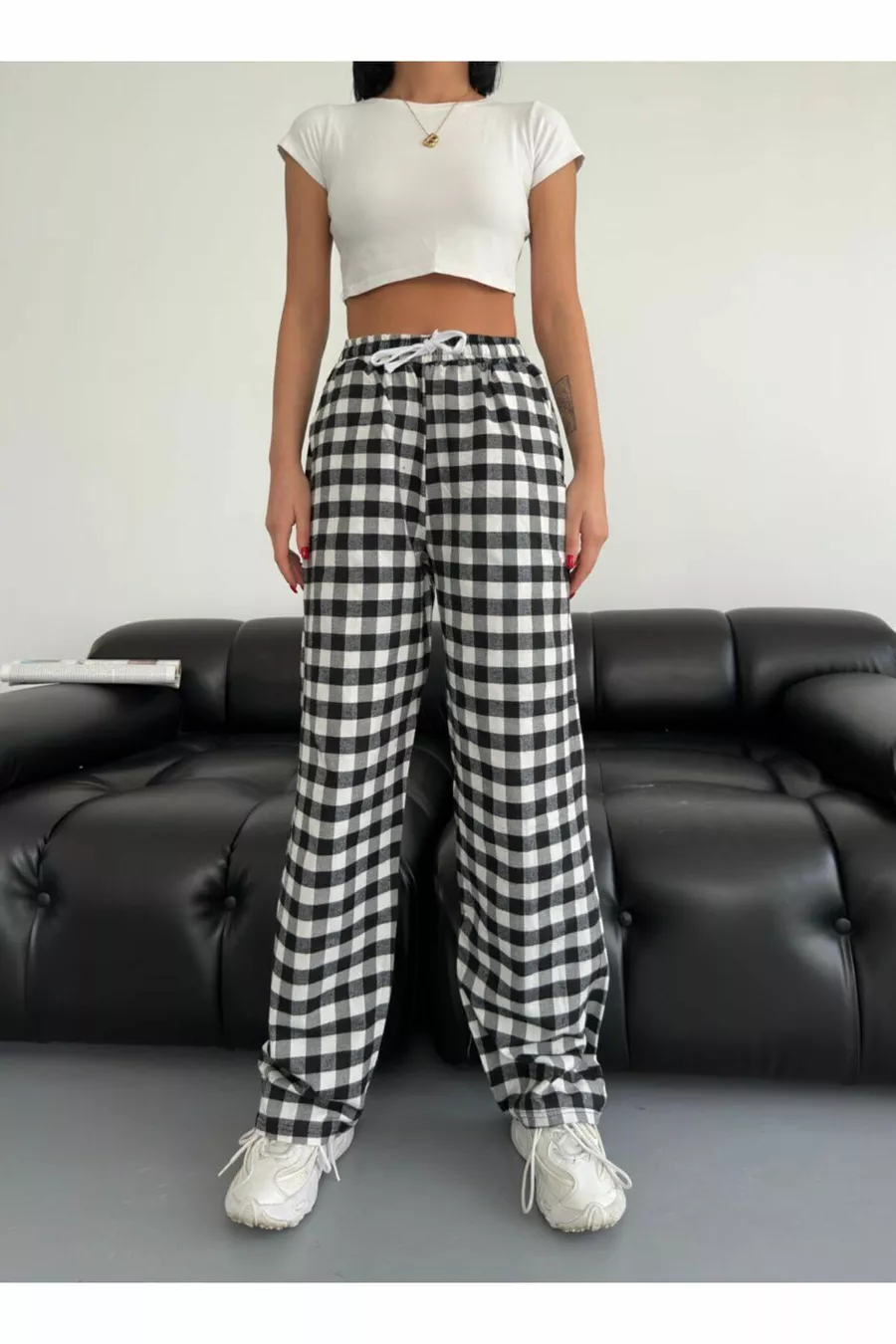 Material: Cotton Polyester Length: Long Pattern: Jacquard Color: Black Package Contents: Single Product Type: Plain Collection: Unisex Fabric Type: Woven Waist: Regular Waist Weave Type: 2-Ply Fit: Regular Sustainability Detail: No Length: Standard Additional Feature: No Additional Feature Environment: Homewear Material Composition: 70% Cotton, 30% Polyester Washing Instructions: T01 Silhouette: Long Leg Type: Wide Leg Product Detail: Elastic Persona: Young Origin: TR