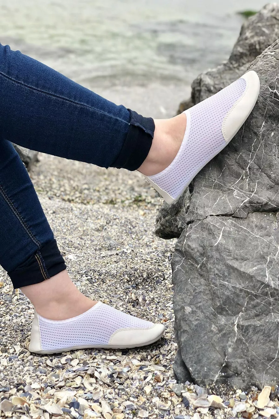 Material: Textile Color: White Sole Material: PVC Upper Material: Textile Heel Height: Short Heel (1-4 cm) Insole Material: Textile Lining Material: Textile Closure Type: Elastic Washing Instructions: Type 4 Pattern: Patterned Additional Feature: Extra Soft Collection: Unisex Environment: Not Specified Sustainability Detail: Yes Country of Origin: TR