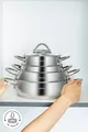 Color: Silver Capacity: 2.3 L Feature: Suitable for use on induction stove Exterior Material: Steel Interior Material: Steel Number of Pieces: 8 Material: Steel