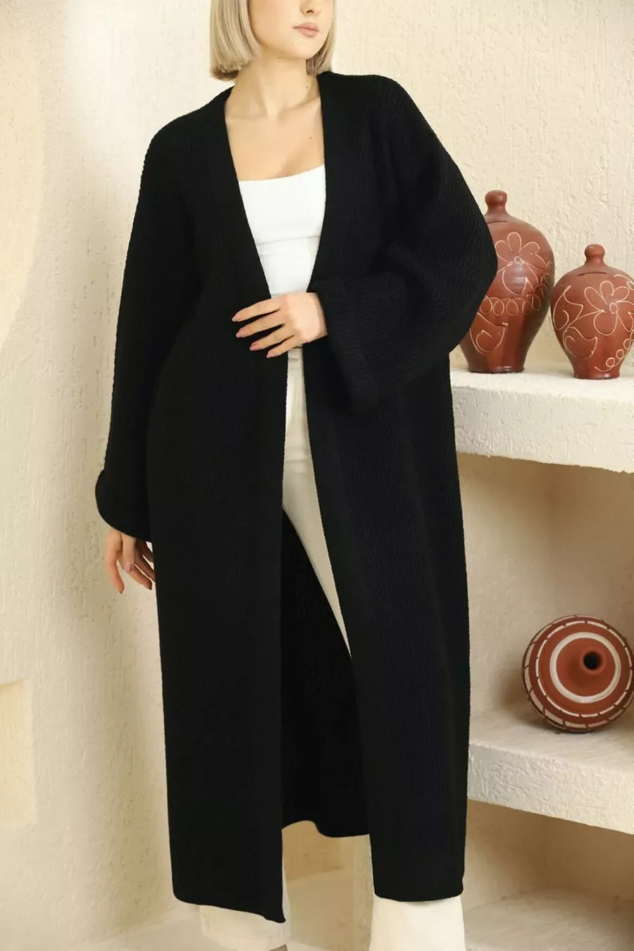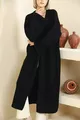 Material: Acrylic Sleeve Type: Long Sleeve Pattern: Solid Fit: Regular Color: Black Fabric Type: Knitted Neck Type: V-Neck Product Detail: Woven Detail Product Type: Solid Pocket: No pockets Sleeve Length: Long Collection: Design Thickness: Thick Length: Long Silhouette: Relaxed Occasion: Casual/Daily Extra Feature: No Extra Feature Print/Embroidery Technique: No Print Closure Type: No Closure Number of Pieces: 1 Persona: Cool & Comfort Sustainability Detail: Yes Weave Type: Knit Belt/Waistband: Without Belt Material Composition: 100% Acrylic Washing Instructions: T02 Season: Winter Origin: TR Box Status: No Box