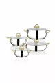 Color: Gold Capacity: 3 L Feature: Non-stick Base Outer Material: Steel Inner Material: Steel Number of Pieces: 12+ Material: Steel