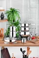Color: Silver Capacity: 1 L Feature: Non-stick Base Outer Material: Steel Inner Material: Steel Number of Pieces: 12+ Material: Steel
