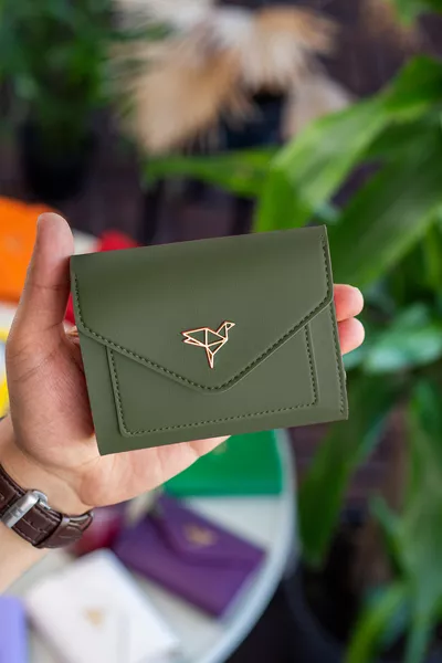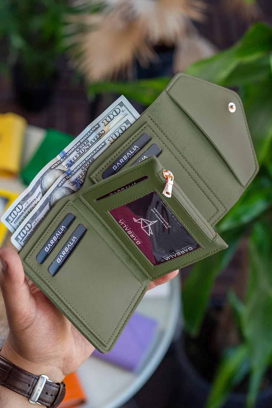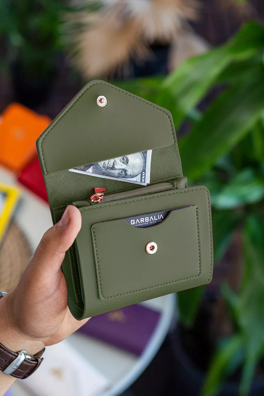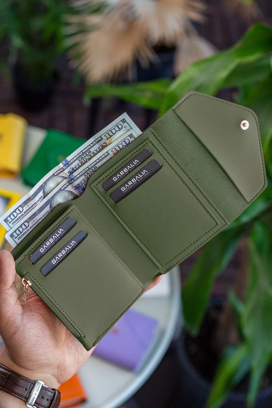 Vegan Leather Mini Khaki Green Women's Wallet with Coin Pocket and Multiple Card Slots