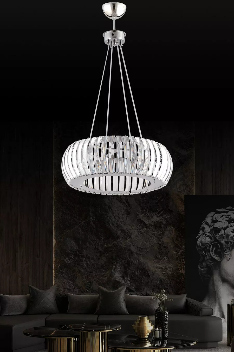 Material: Metal Model: With Stones Socket Type: E27 Number of Bulb Sockets: 1 Color: Silver Size/Dimensions: 40 x 70 Height: 61 - 70 cm Usage Area: Kitchen Origin: TR Feature: Long