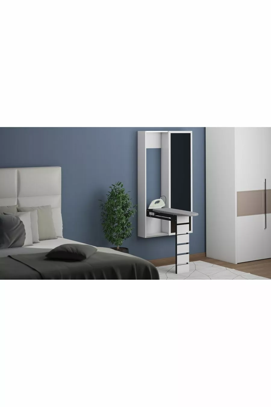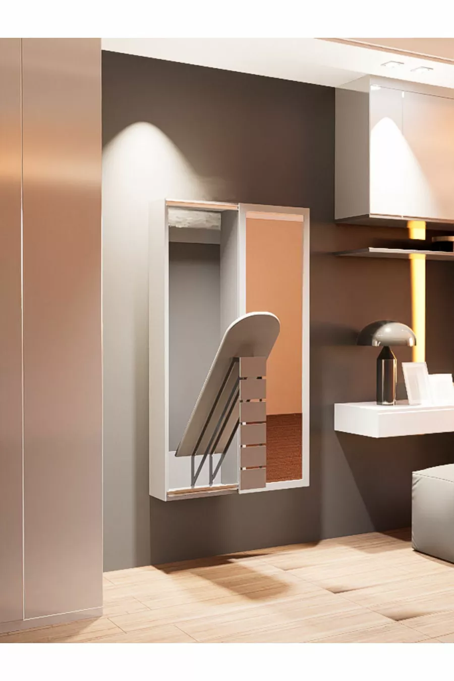 Wall-Mounted Foldable Ironing Board with Mirror-Covered Door, Practical Open and Close Cabinet