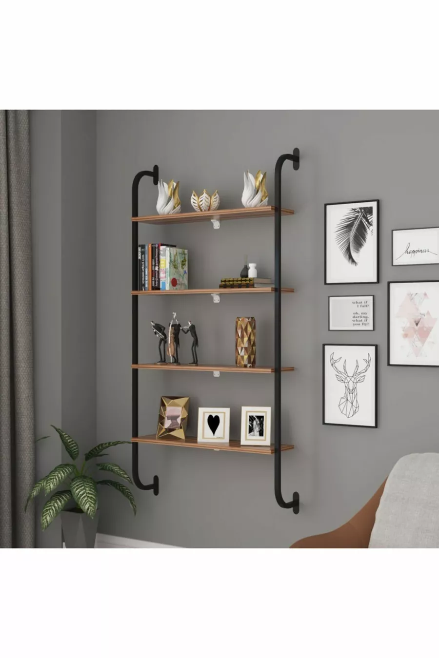 Tip: Wall Mounted Material: Metal Color: Brown Height: 130 cm Width: 60 cm Depth: 60 cm Number of Shelves: 4 Body Material: Wood Style: Modern Theme / Style: Modern Origin: TR Feature: With Shelves