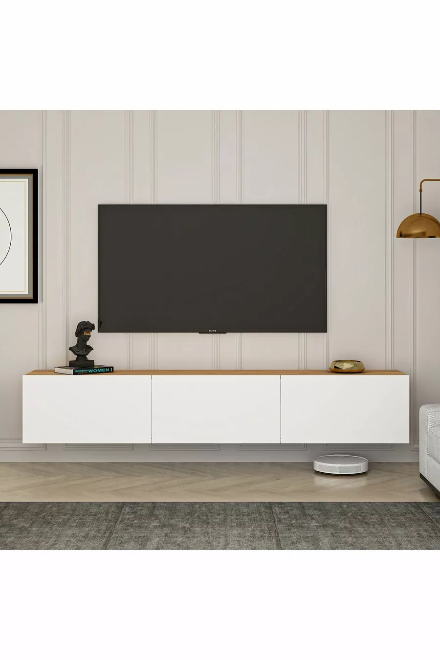 Material: Particleboard Feature: With lid Color: White Size/Dimension: 1 x 3 Height: 30 cm Width: 150 cm Depth: 32 cm Warranty Period: 1 Year Style: Scandinavian Theme / Style: Scandinavian