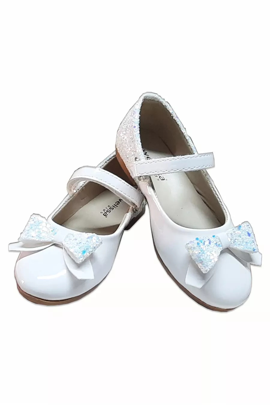 White Glitter Patent Leather Girls' Ballet Flats