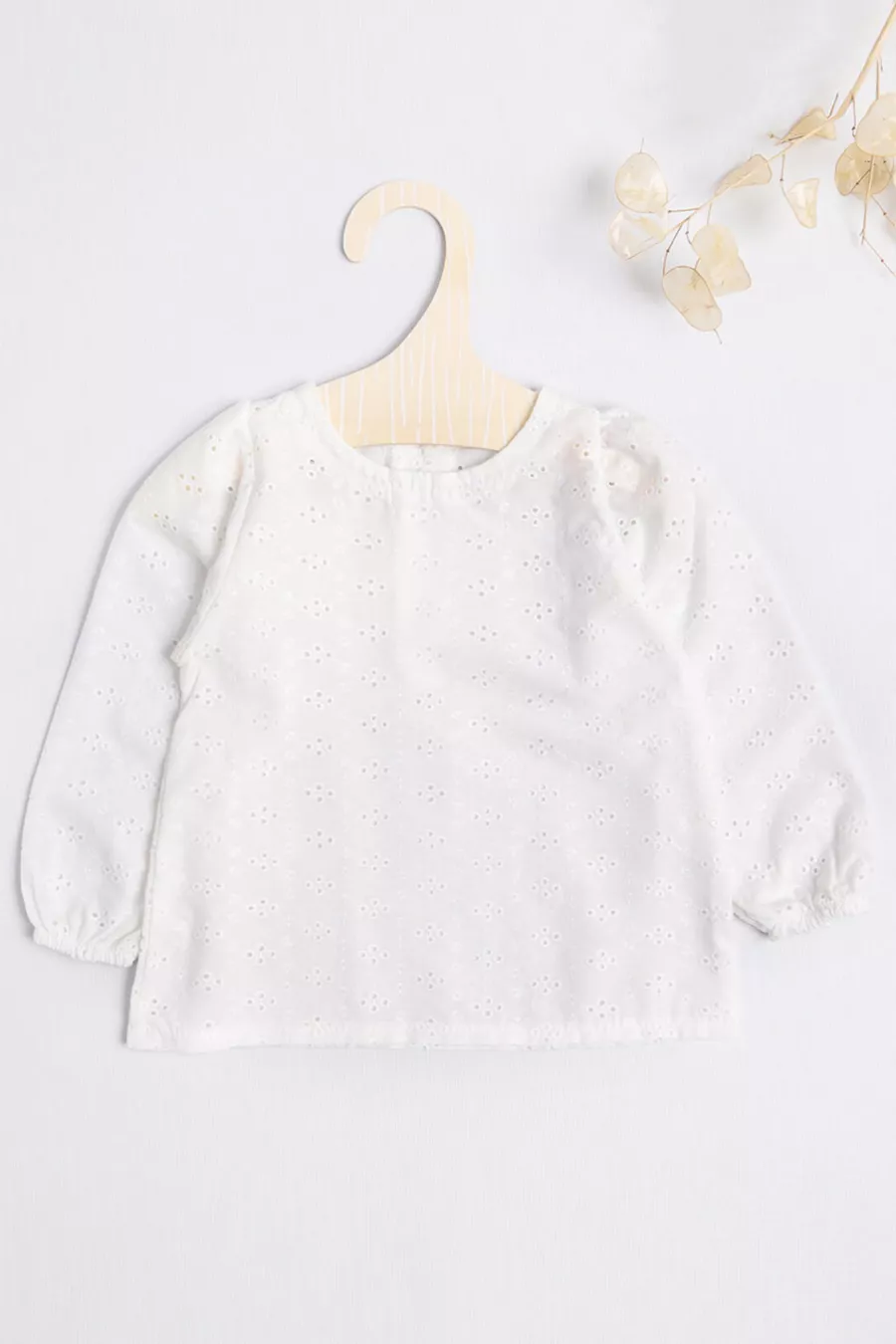 White Long Sleeve Lace Girl's Blouse