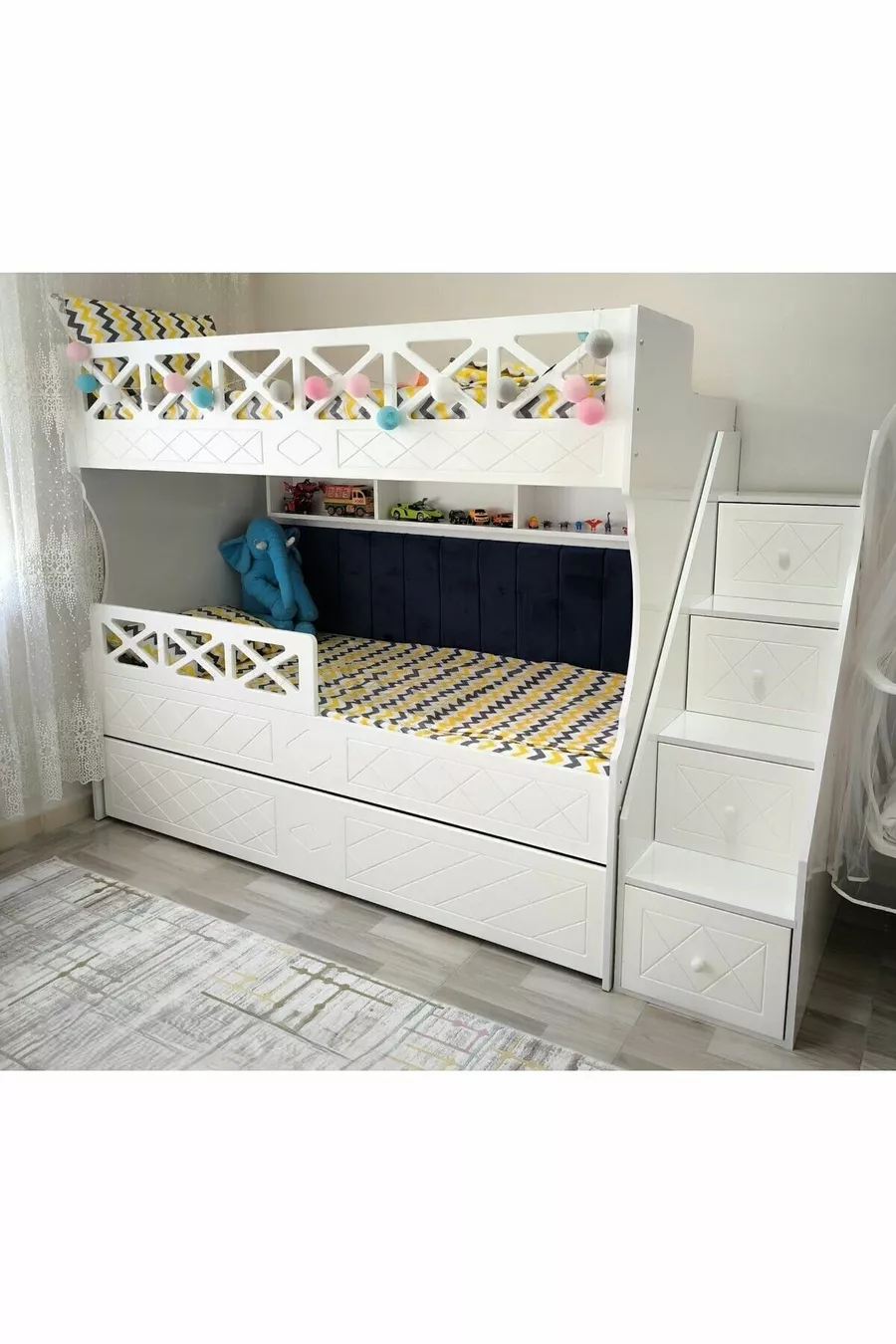 Color: White Material: MDF Size: Double Dimensions: 90 x 190 Warranty: 2 Years Style: Modern Theme / Style: Modern Nested Bed: Yes Feature: Ventilation