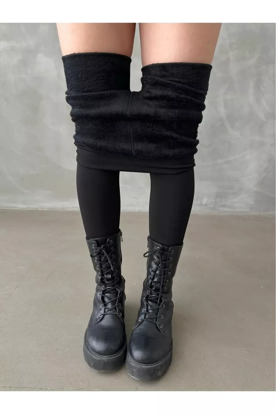 winter plush-lined thermal towel leggings with shaping effect