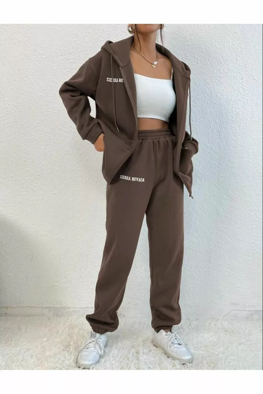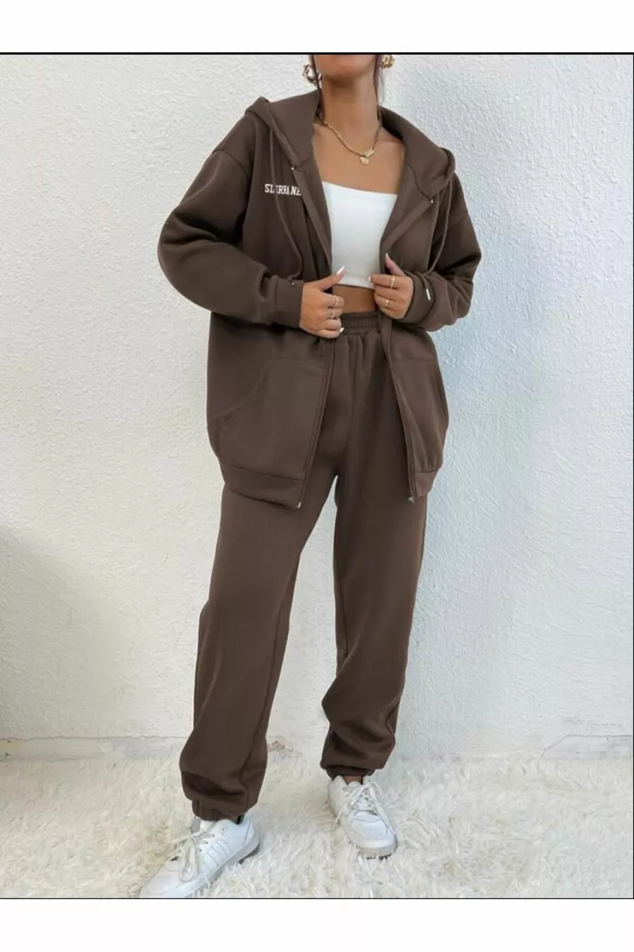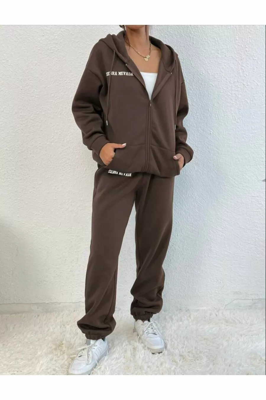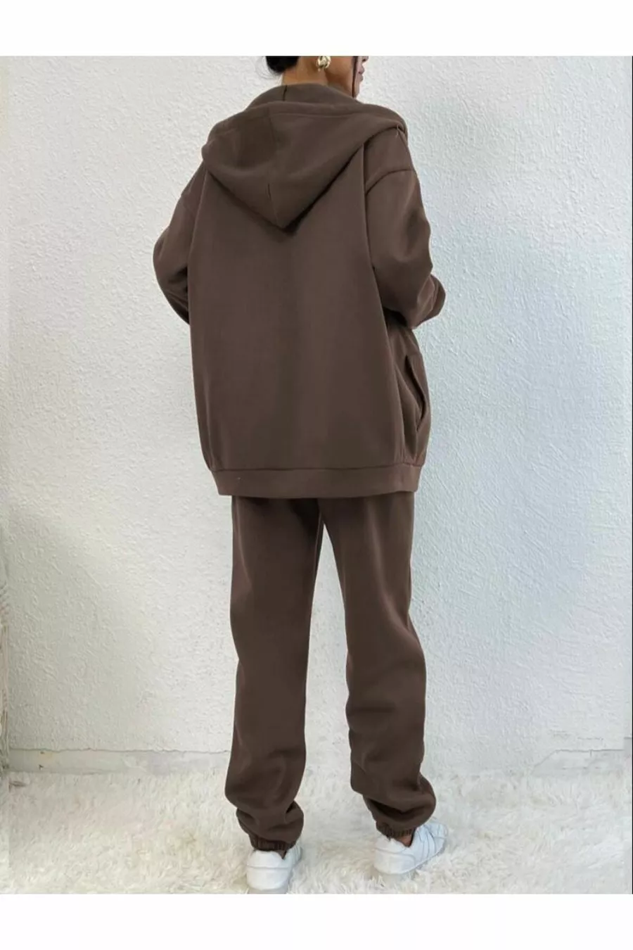 Material: Cotton Closure Type: Zippered Leg Length: Long Leg Type: Elastic Cuff Sleeve Type: Long Sleeve Fit: Oversize Color: Brown Product Details: Elastic Sleeve Length: Long Pattern: Printed Pocket: Double Pocket Collection: Unisex Package Content: Set of 2 Fabric Type: Woven Additional Feature: No Additional Feature Print/Embroidery Technique: Digital Print Weave Type: 3-Ply Sustainability Details: No Persona: Cool & Comfort Waist: Regular Waist Occasion: Casual Length: Long Silhouette: Basic Material Composition: 100% Cotton Collar Type: Hooded Top-Bottom Set: Sweatshirt-Pants Washing Instructions: Type 1 Season: All Seasons Origin: TR Number of Pieces: 2