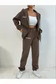 Women's 3-Thread Brown Sierra Nevada Printed Cardigan Jogger Oversize Tracksuit