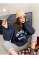 Women's 3-Thread Navy Suppose Printed Oversized Sweatshirt