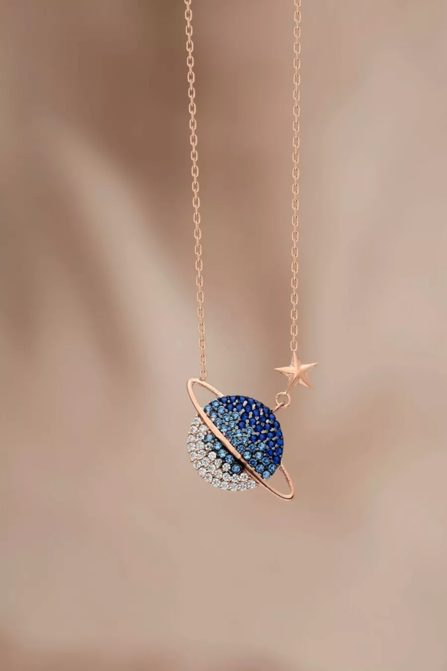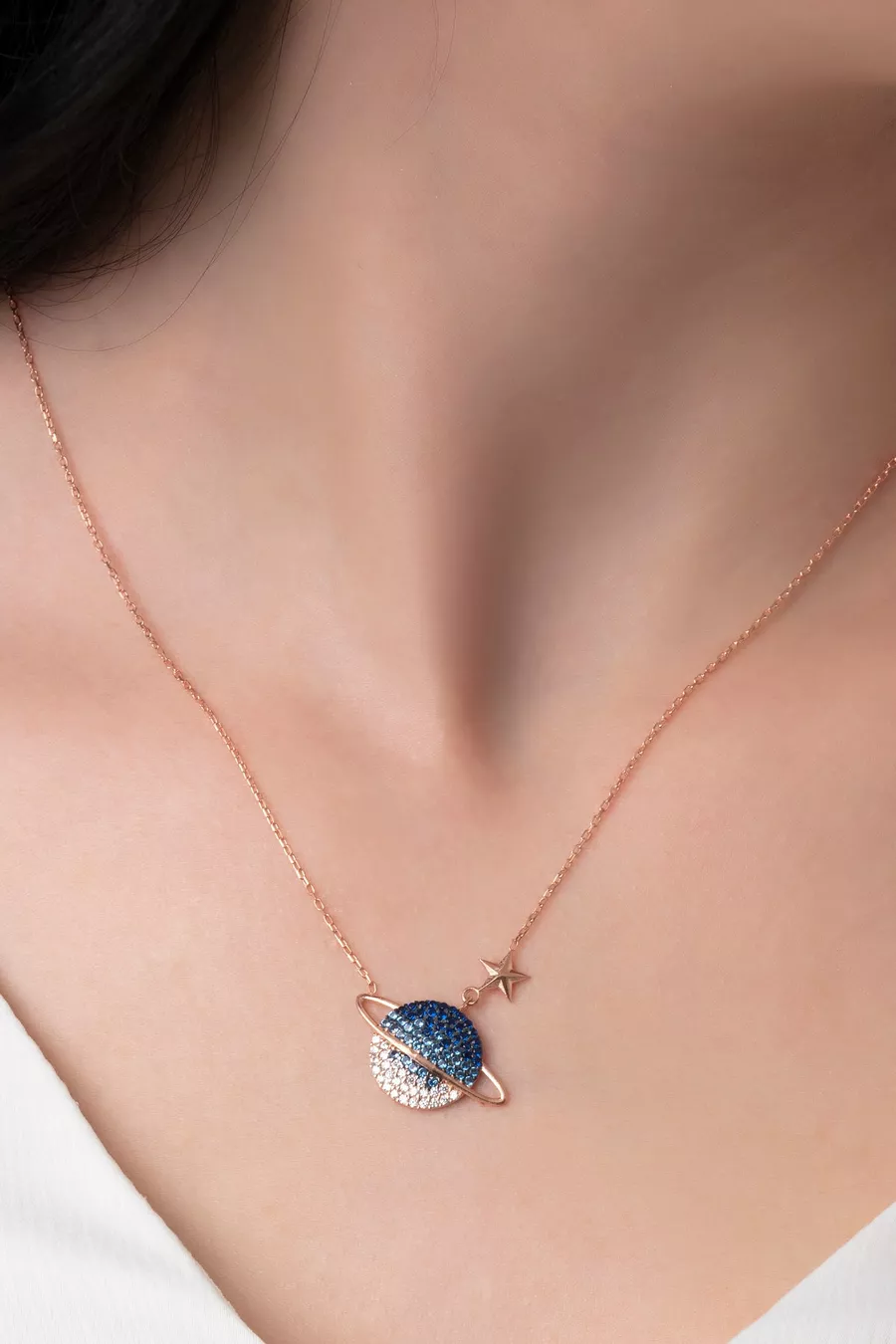 Women's Adjustable Silver Chain Rose Plated Colored Stone Planet Model Necklace