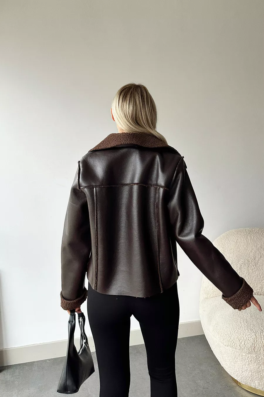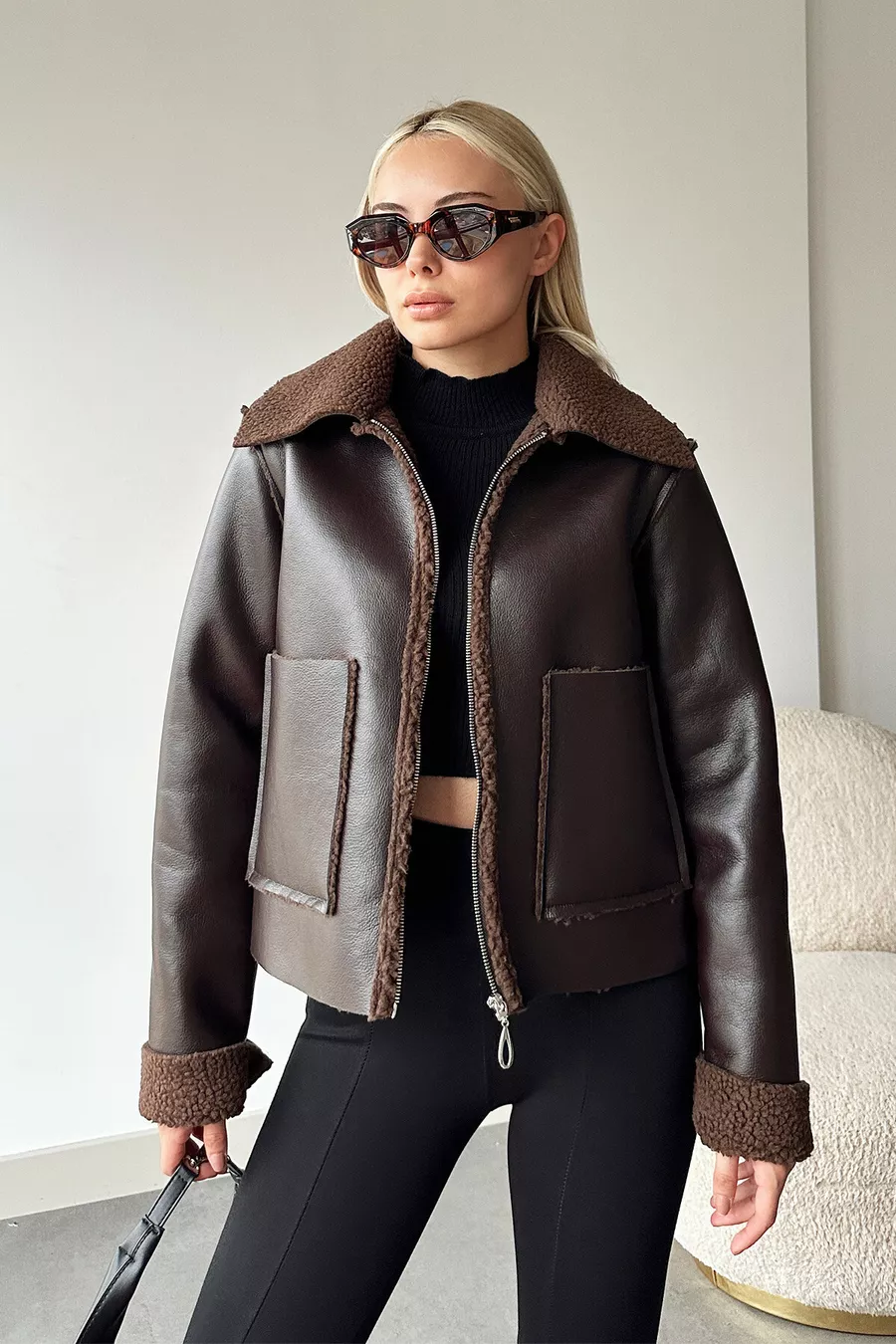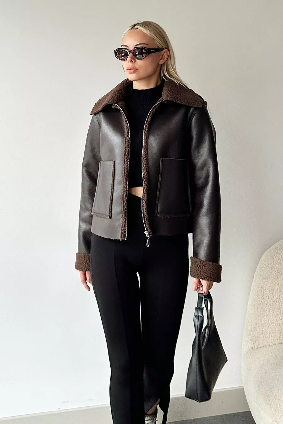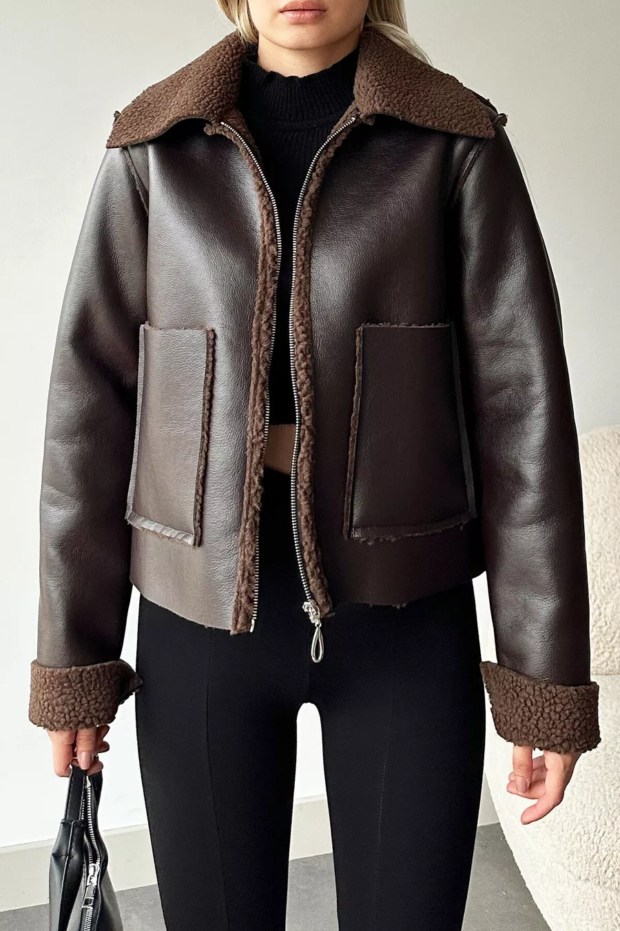 Sleeve Type: Balloon Sleeve Pattern: Plain Fit: Regular Collar Type: Jacket Collar Material: Faux Leather Fabric Type: Woven Color: Brown Closure Type: Zippered Product Detail: Fur Collar Pocket: Double Pocket Sleeve Length: Long Collection: Basic Thickness: Medium Lining: Unlined Length: Regular Silhouette: Biker Occasion: Casual Additional Feature: No Additional Feature Weave Type: Faux Leather Sustainability Detail: No Persona: Feminine Belt/Strap Status: Without Belt Product Type: Plain Material Composition: 50% Faux, 50% Plush Washing Instructions: Type 4 Origin: TR Box Status: No Box