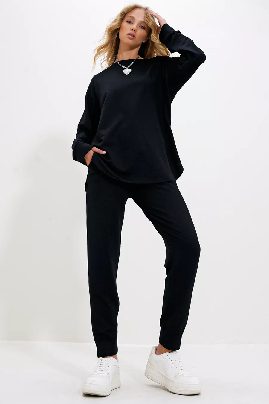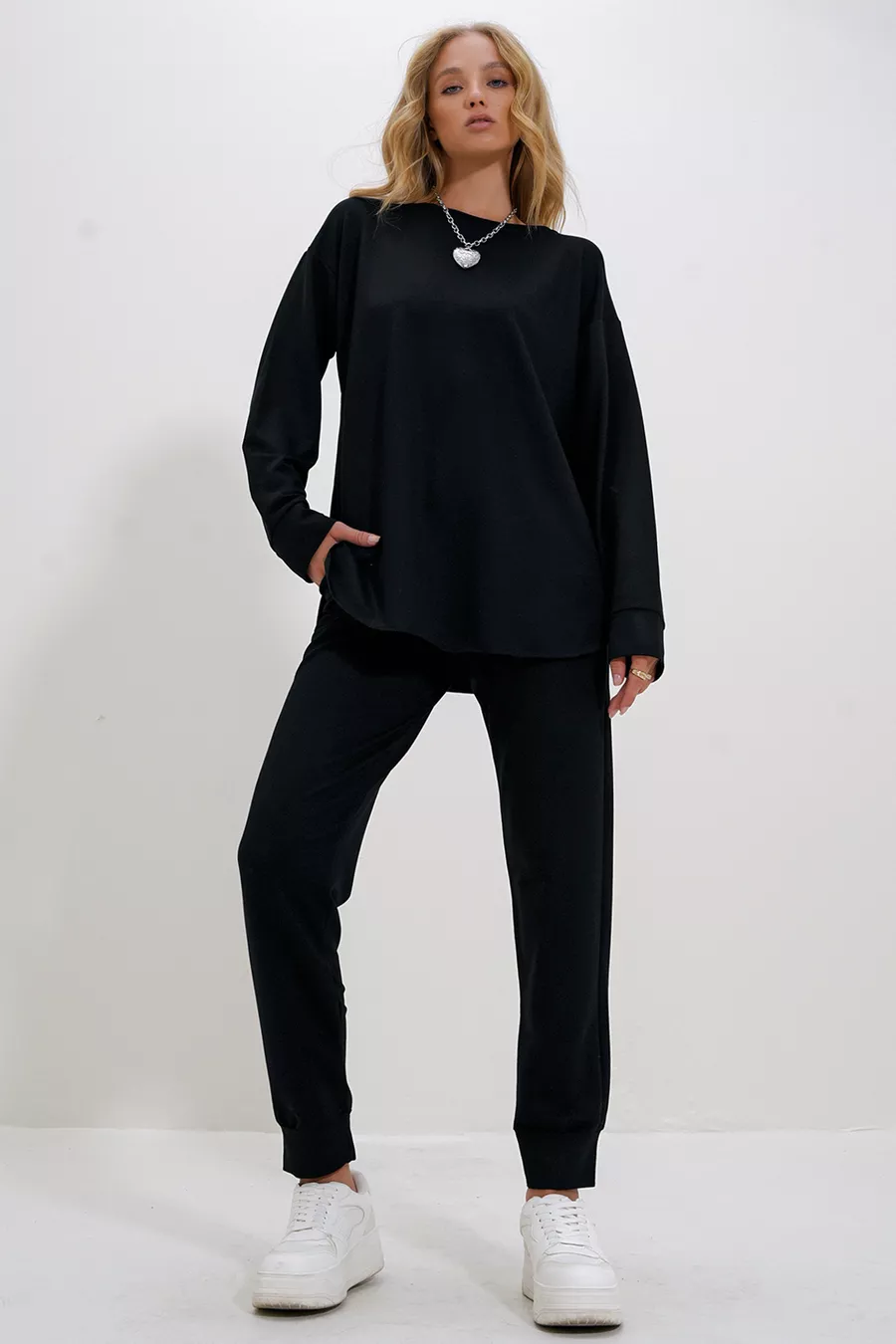 Material: 100% Cotton Leg Length: Long Leg Type: Straight Leg Sleeve Type: Standard Sleeve Fit: Regular Color: Black Sleeve Length: Long Pattern: Plain Pocket: Double Pocket Package Contents: 2 pieces Fabric Type: Woven Printing/Embroidery Technique: No Print Sustainability Detail: No Waist: Regular Waist Occasion: Casual Length: Long Silhouette: Basic Material Composition: 100% Cotton Neck Type: Crew Neck Washing Instructions: T01