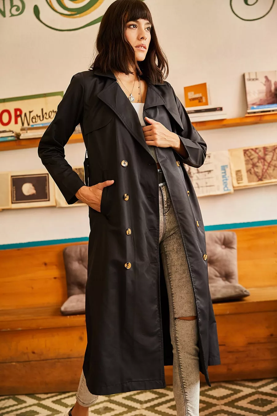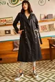 Fit: Regular Material: Cotton Polyester Fabric Type: Woven Color: Black Collar Type: Jacket Collar Product Detail: With Pocket Detail Pattern: Solid Product Type: Solid Pocket: Double Pocket Sleeve Type: Standard Sleeve Sleeve Length: Long Collection: Basic Thickness: Medium Lining: Unlined Additional Feature: No Additional Feature Persona: Cool & Comfort Closure Type: Buttoned Length: Long Silhouette: Basic Sustainability Detail: No Occasion: Casual/Daily Belt/Strap: Without Belt Material Composition: 100% Polyester Washing Instructions: Type 2
