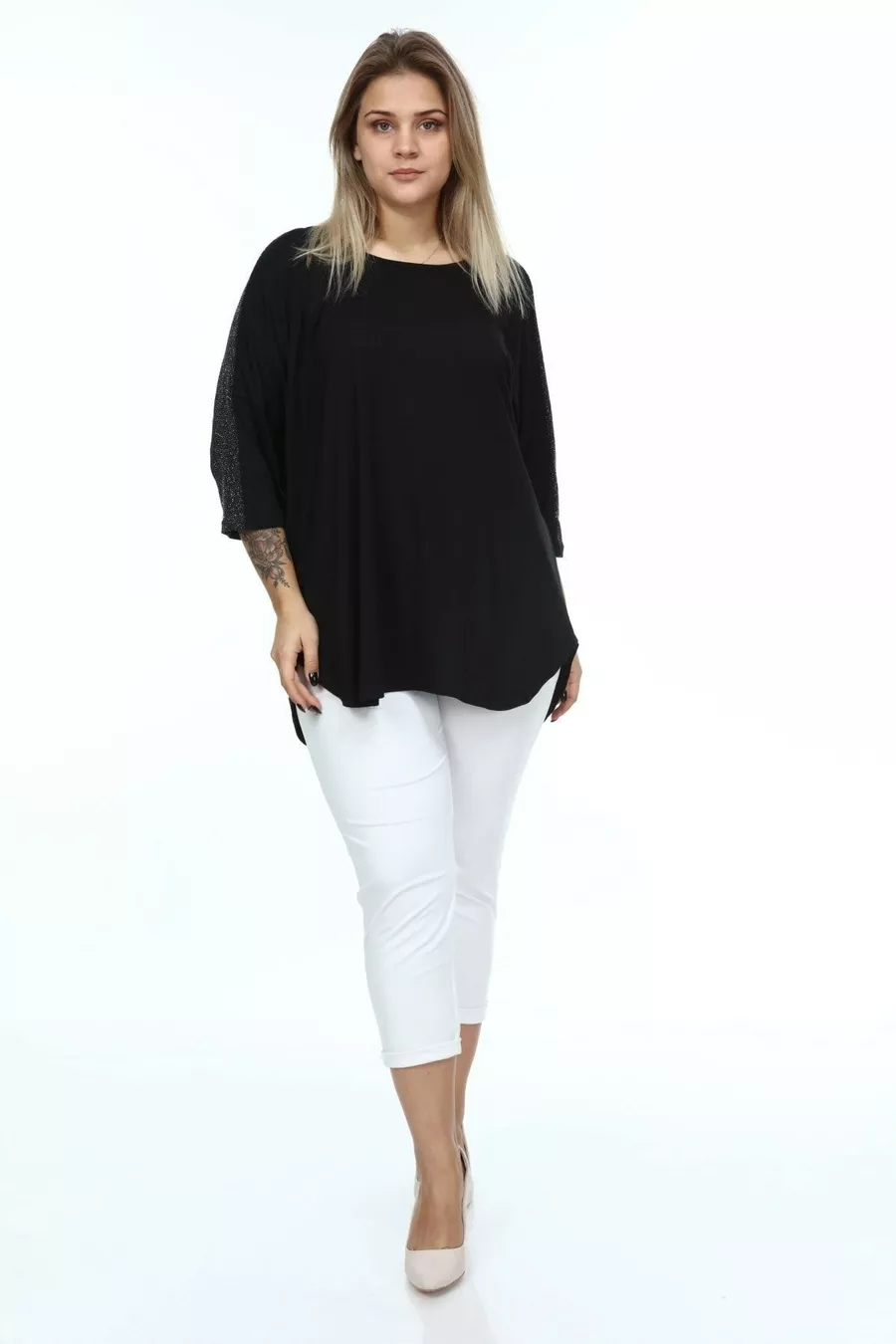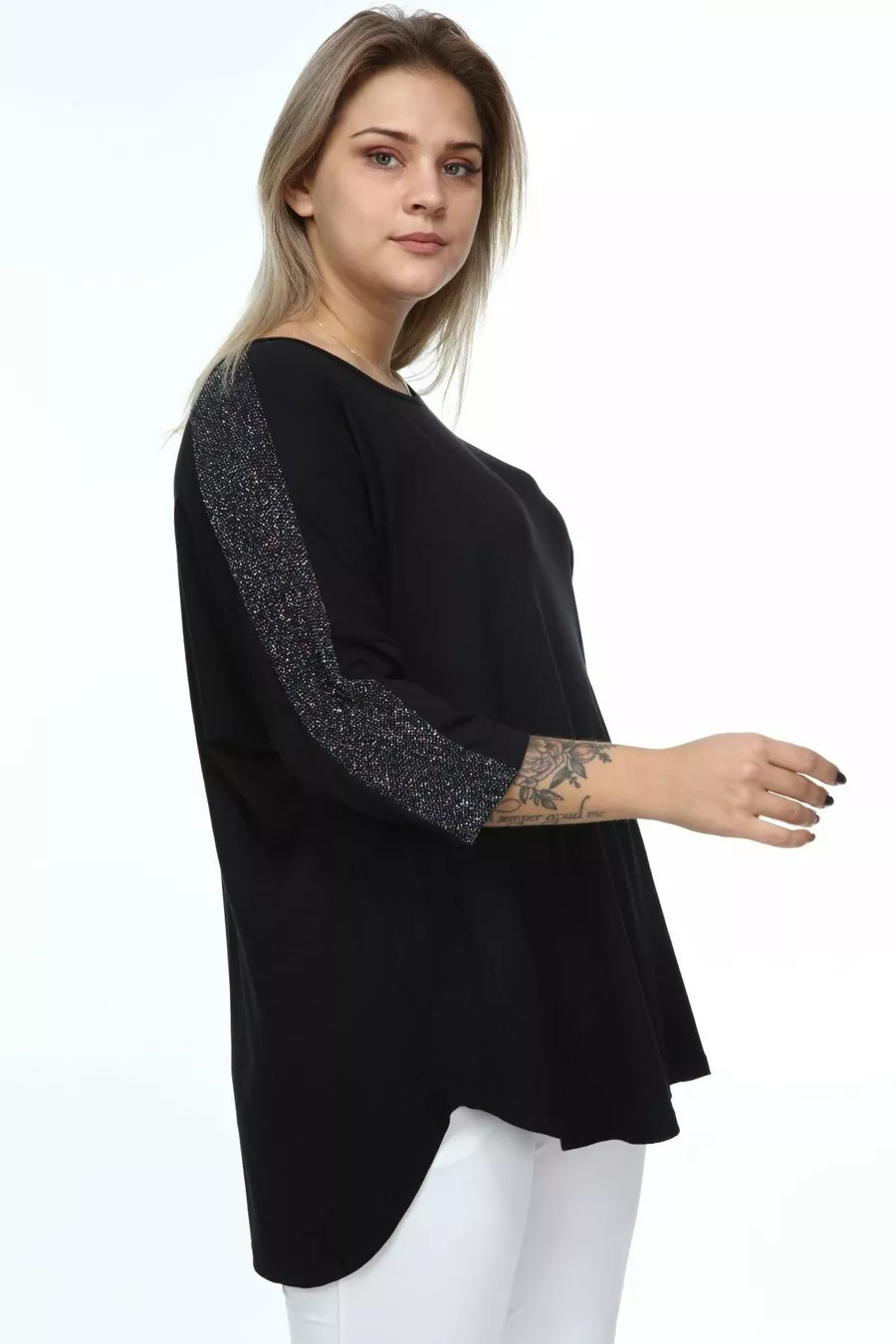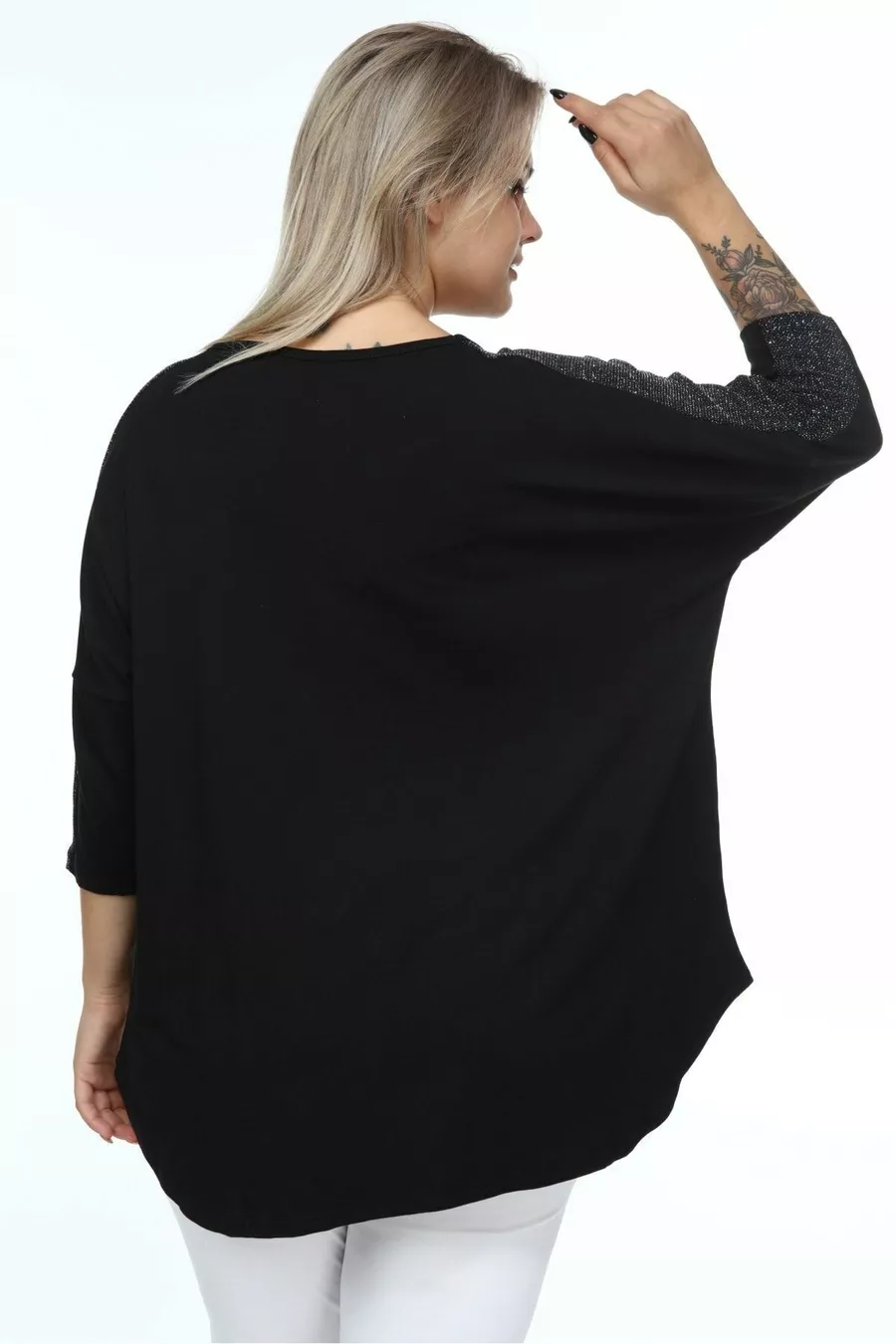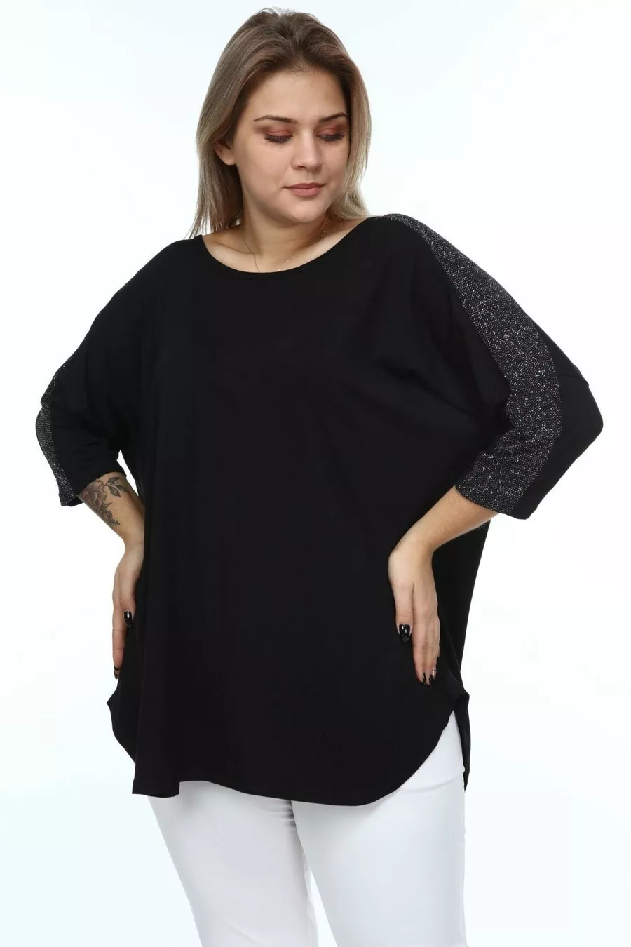 Pattern: Plain Fit: Plus Size Neckline Type: Crew Neck Fabric Type: Knit Material: Viscose Sleeve Type: Turn-up Sleeve Color: Black Occasion: Casual/Daily Length: Midi Sleeve Length: Turn-up Sleeve Print/Embroidery Technique: Non-printed Additional Feature: Stretchy Persona: Fashion Forward Pocket: Pocketless Belt/Strap: Beltless Sustainability Detail: No Silhouette: Tunic Material Composition: 100% Viscose Thickness: Medium Washing Instructions: T01 Collection: Plus Size Origin: TR Package Contents: Single