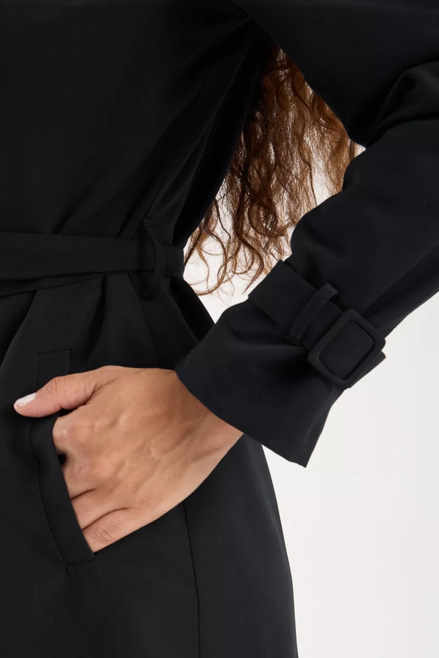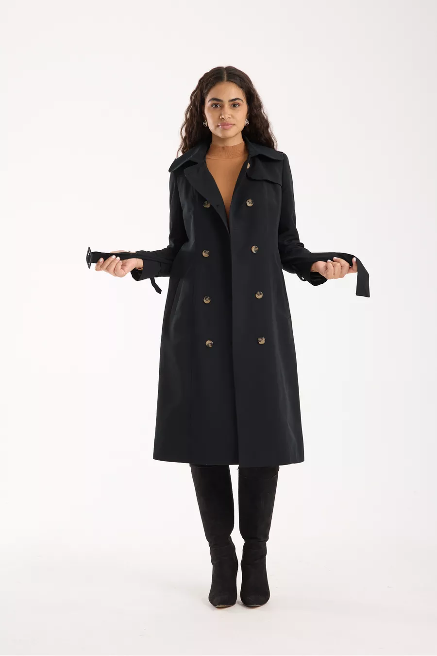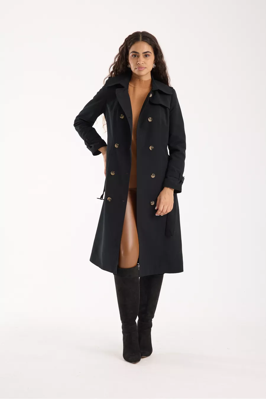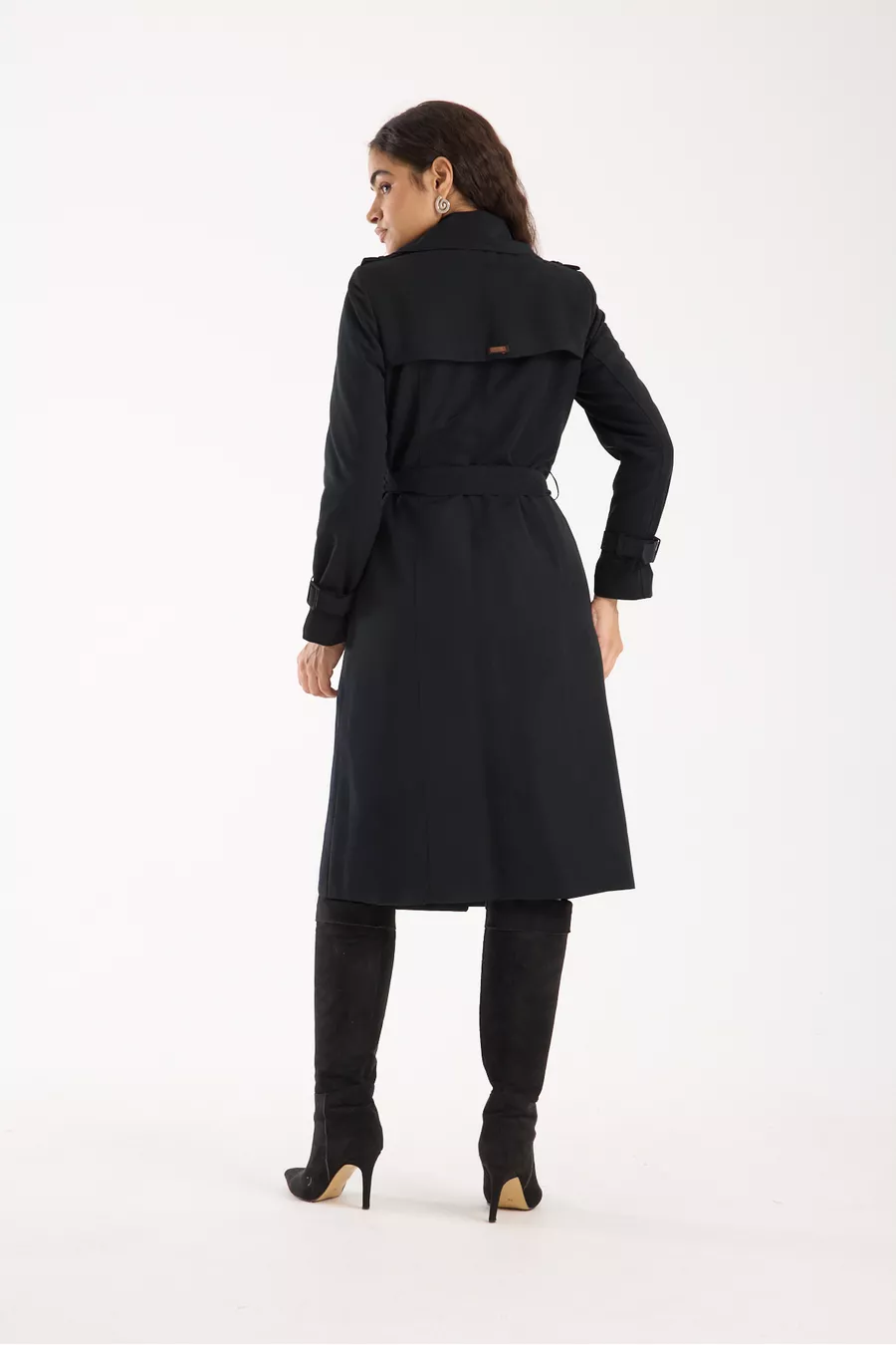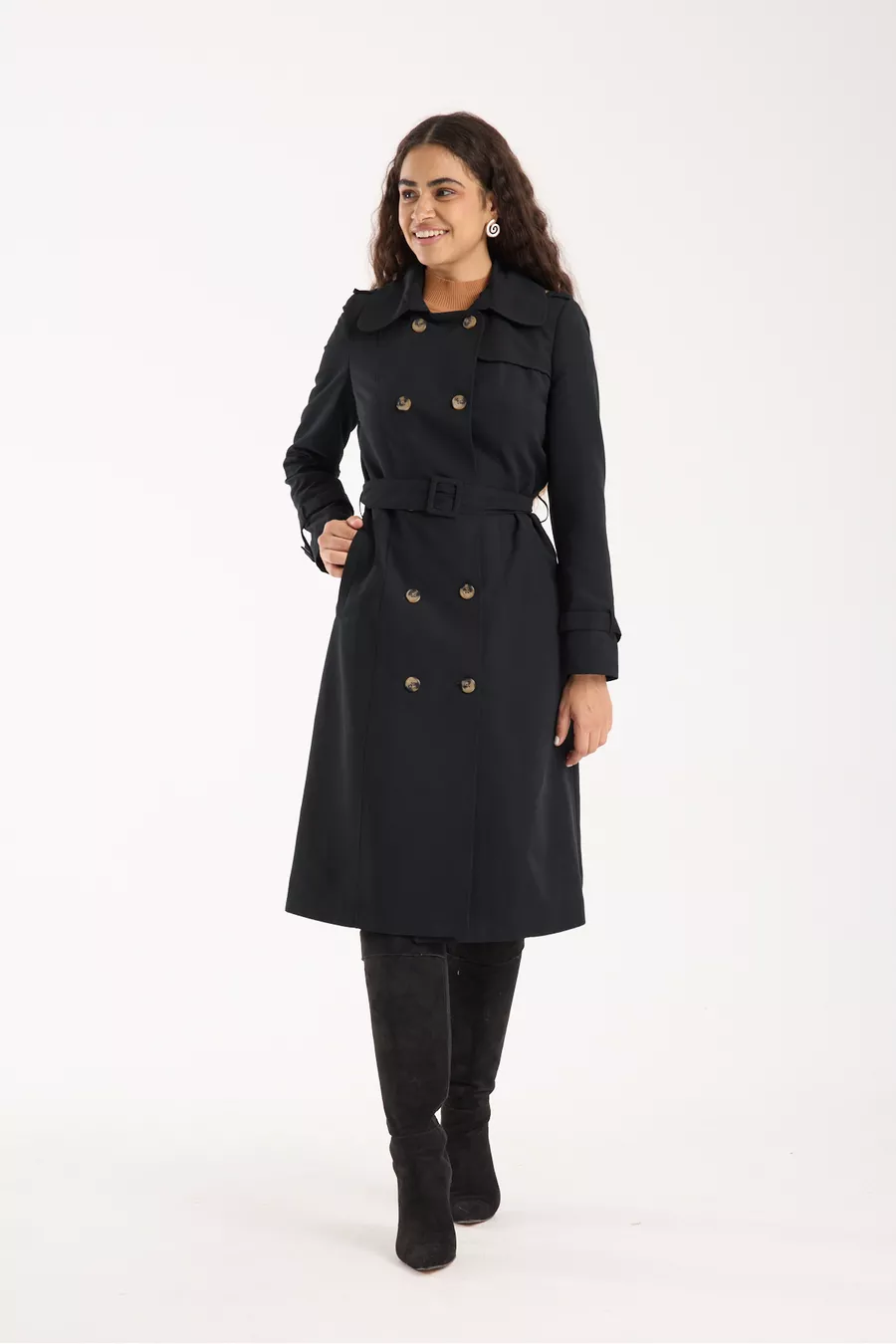 Fit: Regular Material: Polyester Fabric Type: Woven Color: Black Collar Type: Lapel Product Detail: Buckled Pattern: Solid Product Type: Solid Pocket: Double pocket Sleeve Type: Standard Sleeve Sleeve Length: Long Collection: Basic Thickness: Medium Lining: Lined Additional Feature: Water-repellent Persona: Smart/Office Closure Type: Buttoned Length: Standard Silhouette: Lapel Sustainability Detail: No Occasion: Casual Belt/Waistband: With belt Material Composition: 100% Polyester Washing Instructions: T44 Season: All Seasons Origin: TR Weave Type: Plain Weave