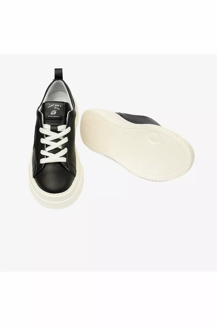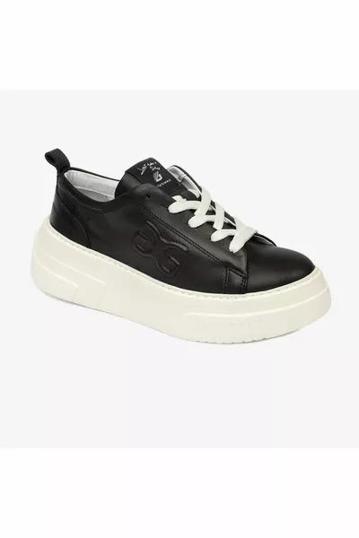 Women's Black Genuine Leather Sneaker Shoes