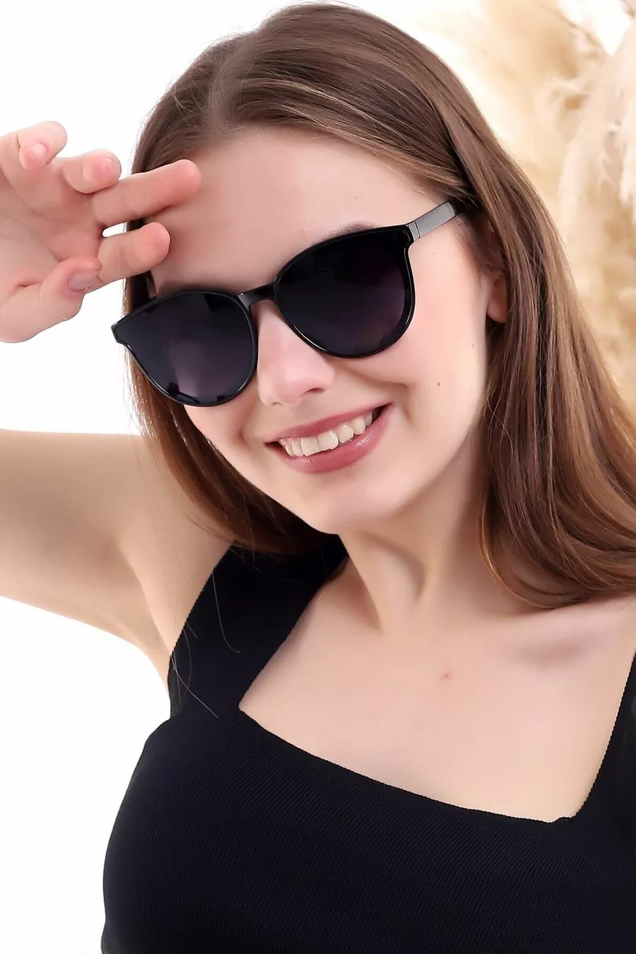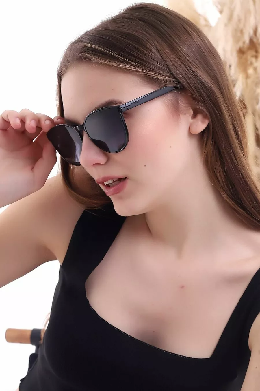 Frame Color: Black Lens Color: Black Lens Material: UV400 Color: Black Frame Material: Acetate Lens Type: Gradient Frame Shape: Geometric Frame Type: Full Frame Pattern: Solid