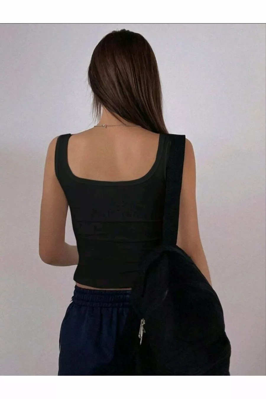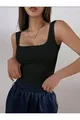 Women's Black Ribbed Square Neck Thick Strap Tank Top Ribbed Crop Tank Sports Ribbed Tank