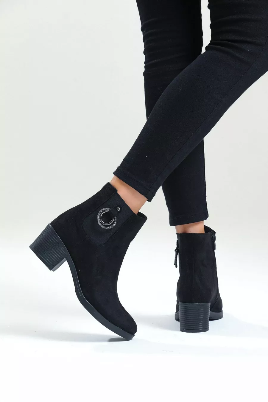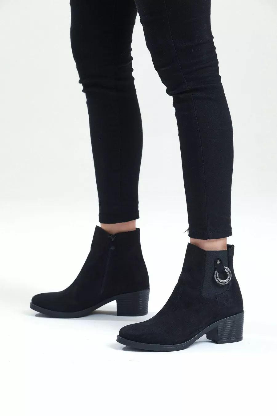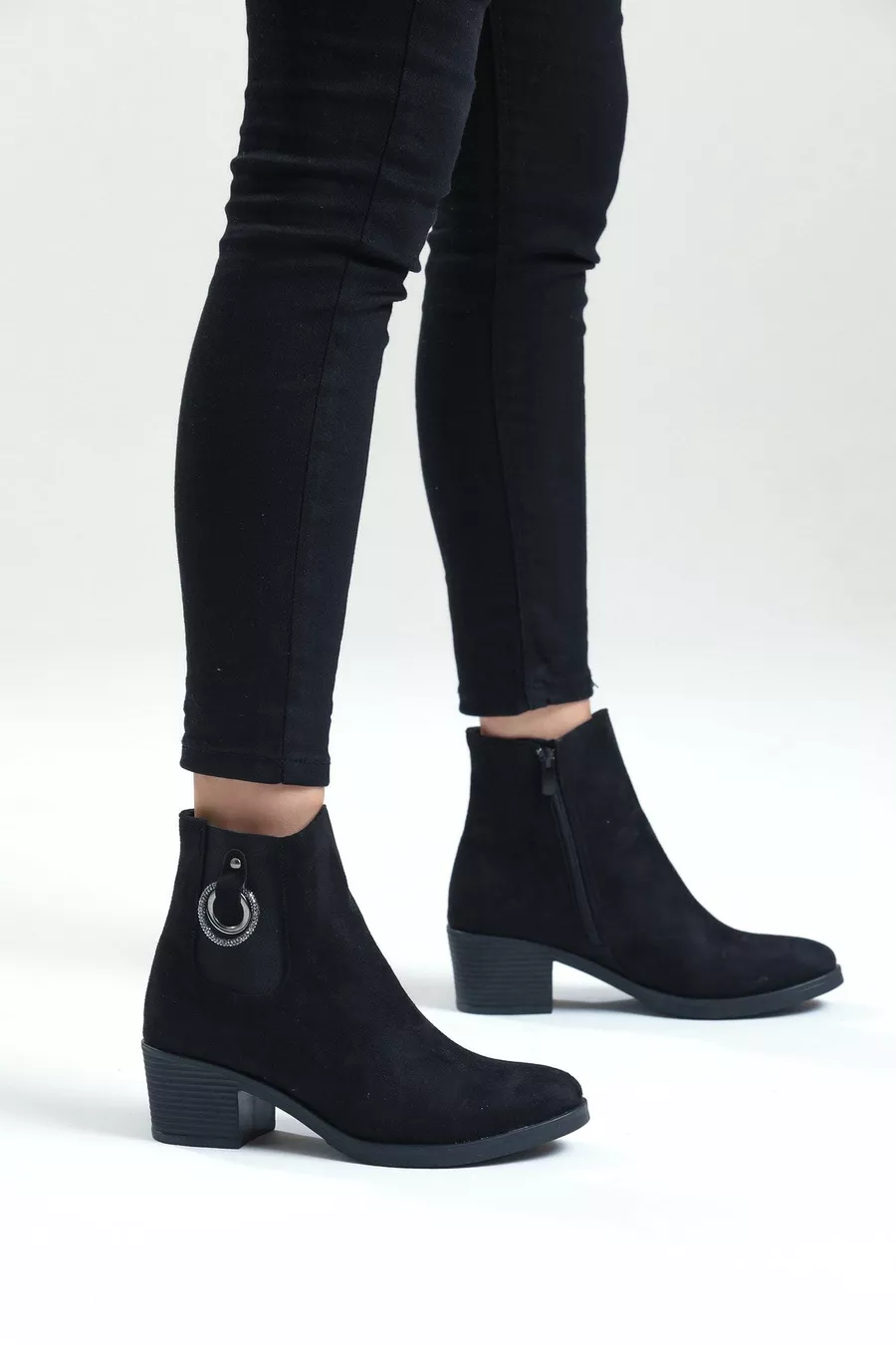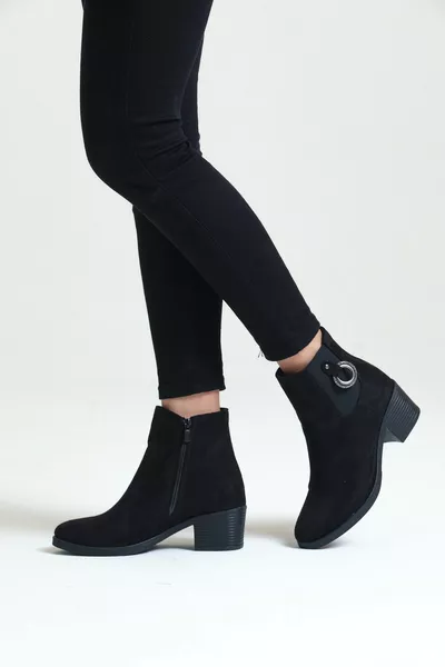 Women's Black Suede Heeled Short Boots