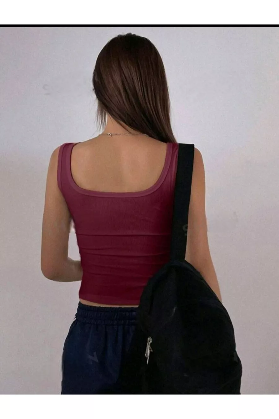 Women's Black 3-Piece Ribbed Square Neck Thick-Strap Tank Top Ribbed Crop Top Sports Ribbed Tank Top