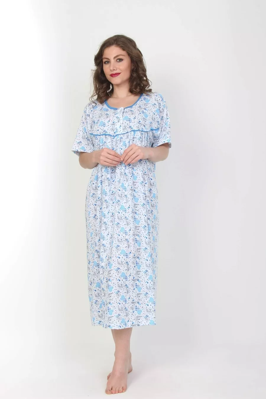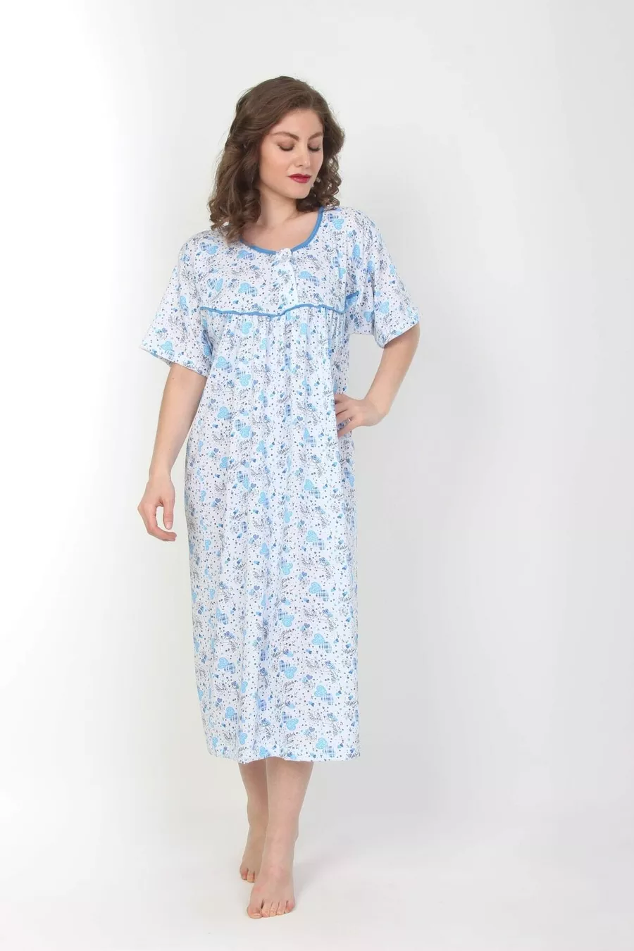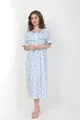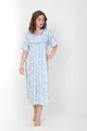 Women's Blue Short Sleeve Patterned Cotton Nightgown