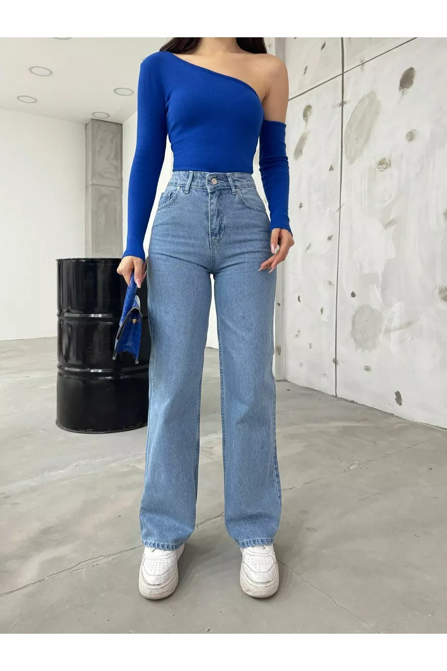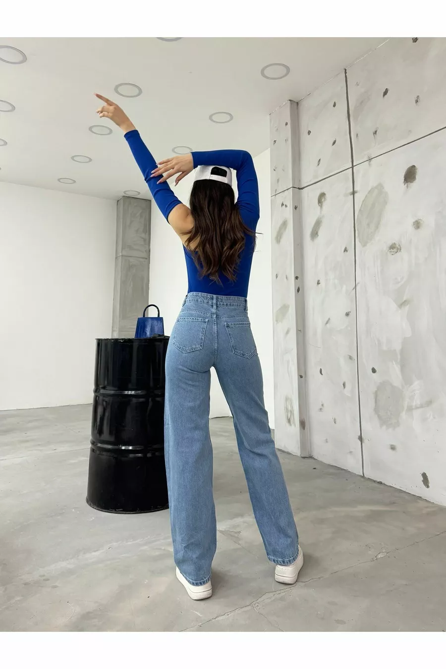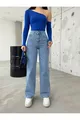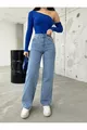 Women's Blue High Waist Lycra Stretchy Wide Leg Jeans