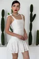 Women's Brode Fabric Strapless Collar Strap Design White Mini Evening Dress